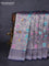 Banarasi tissue silk saree navy blue with allover thread woven floral weaves and silver zari woven border