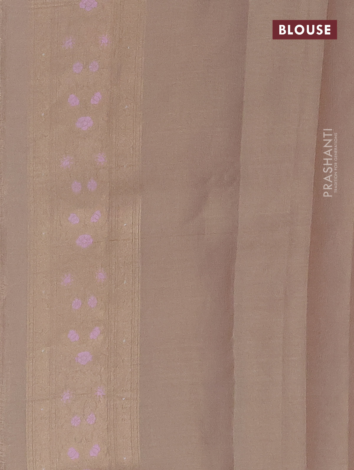 Banarasi tissue silk saree sandal and peach pink with allover thread & zari woven floral weaves and zari woven border