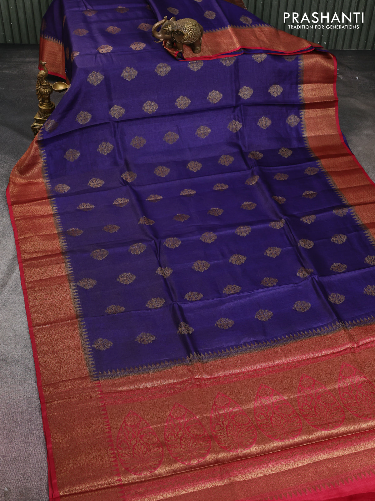 Banarasi tussar silk saree blue and red with thread & zari woven buttas and woven border