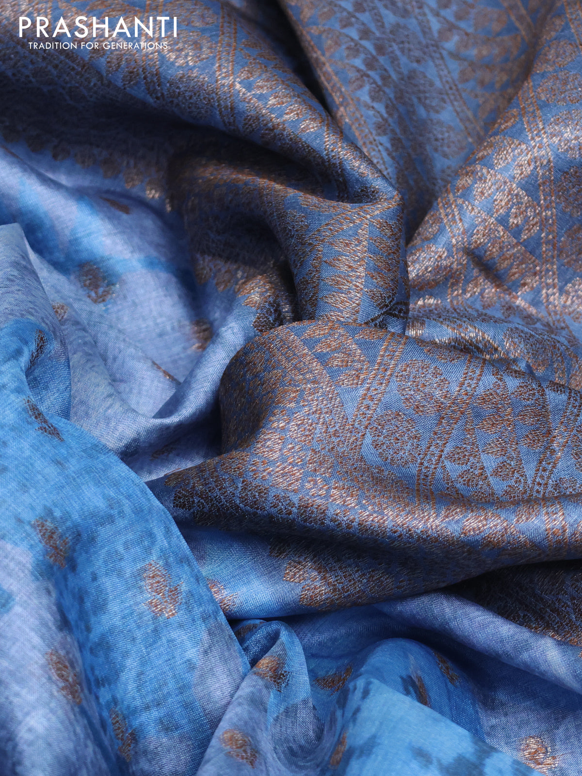 Banarasi tussar silk saree pastel blue with woven buttas & floral digital prints and piping border