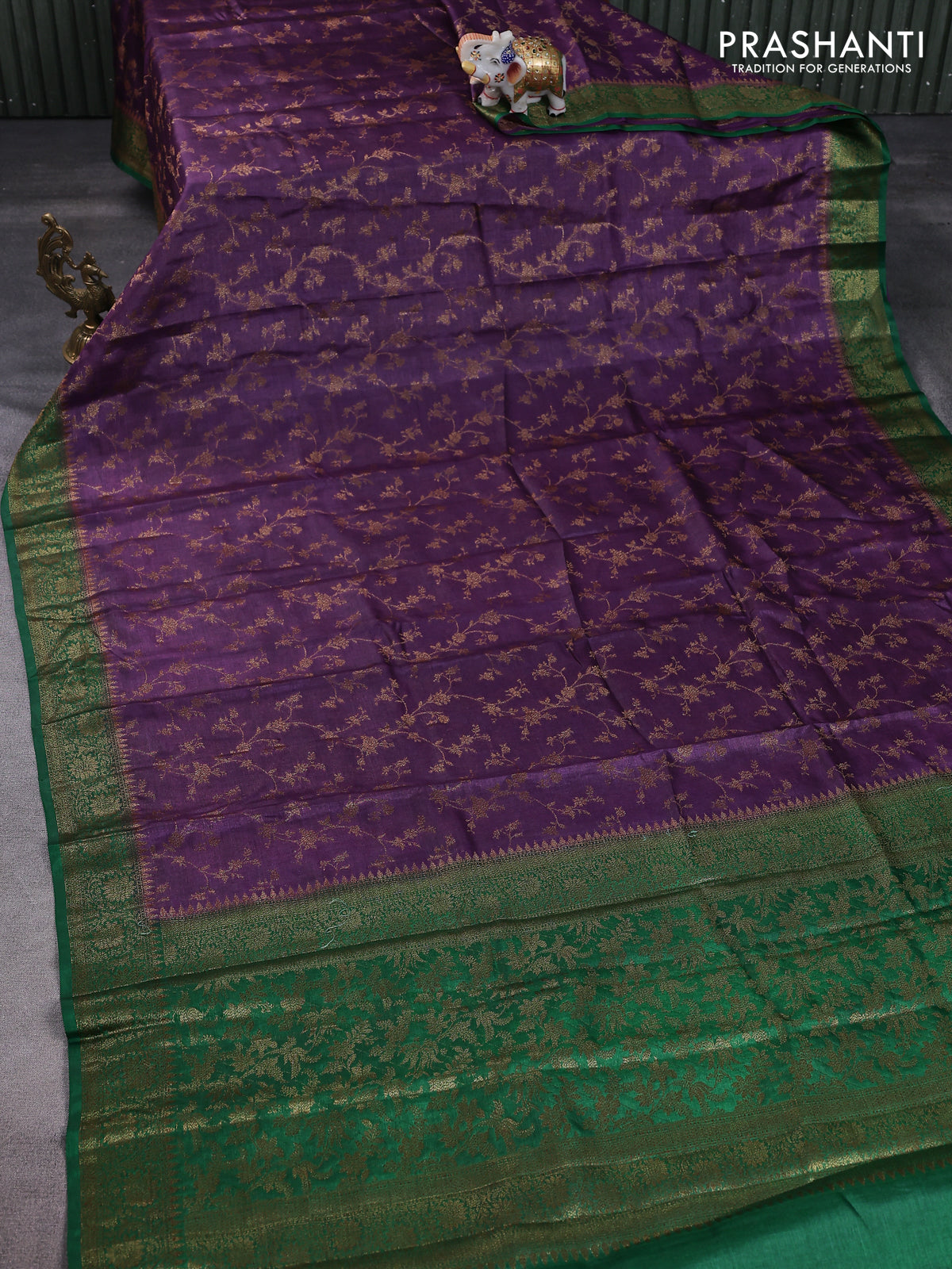 Banarasi tussar silk saree purple and green with allover thread & zari weaves and woven border