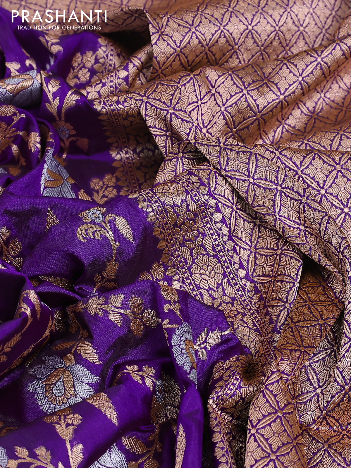 Banarasi uppada silk saree purple with allover silver & gold zari woven floral brocade weaves and zari woven border