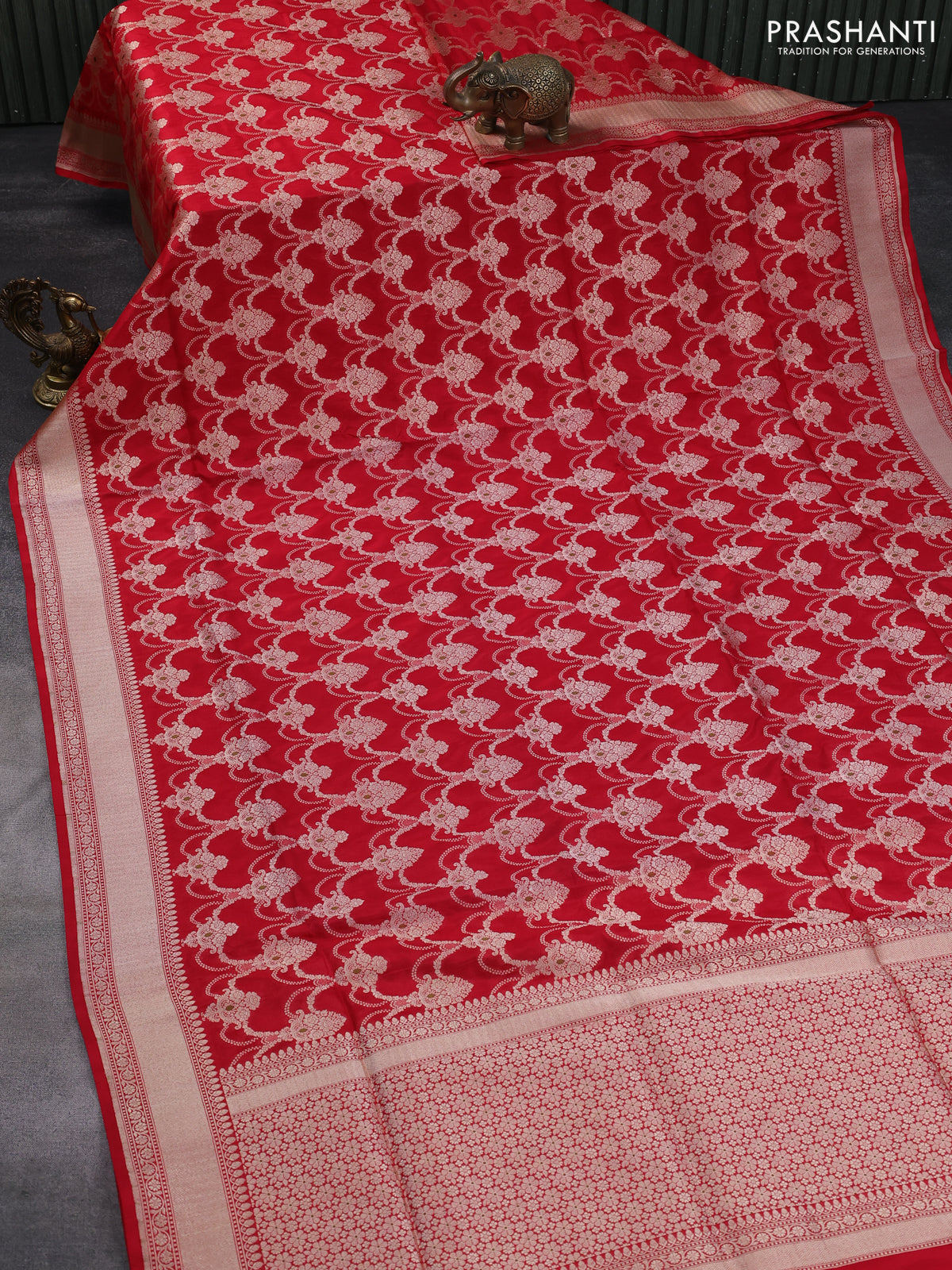 Banarasi uppada silk saree red with allover zari woven brocade weaves and zari woven border