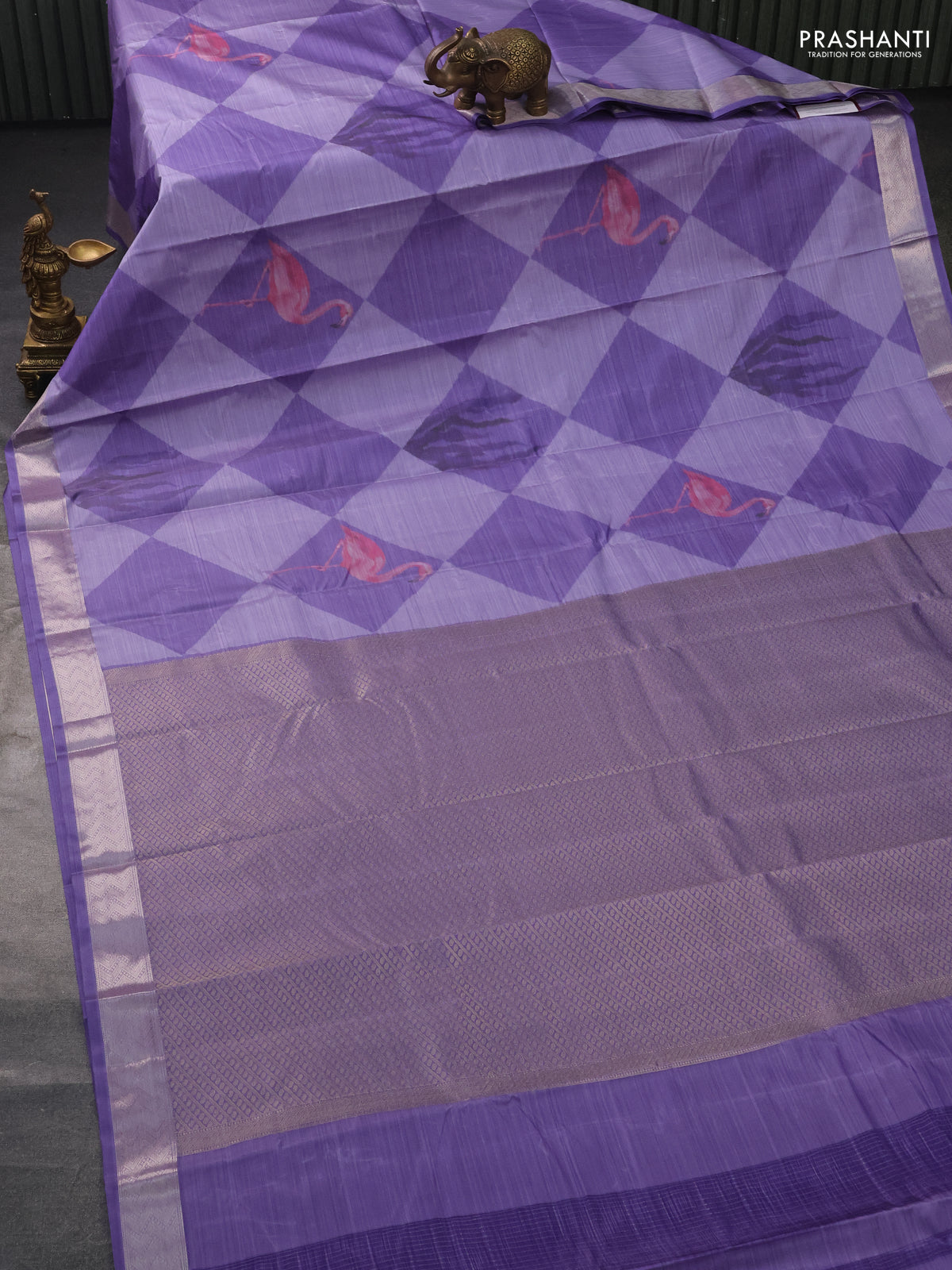 Bangalori semi silk saree lavender with allover ikat weaves and zari woven border