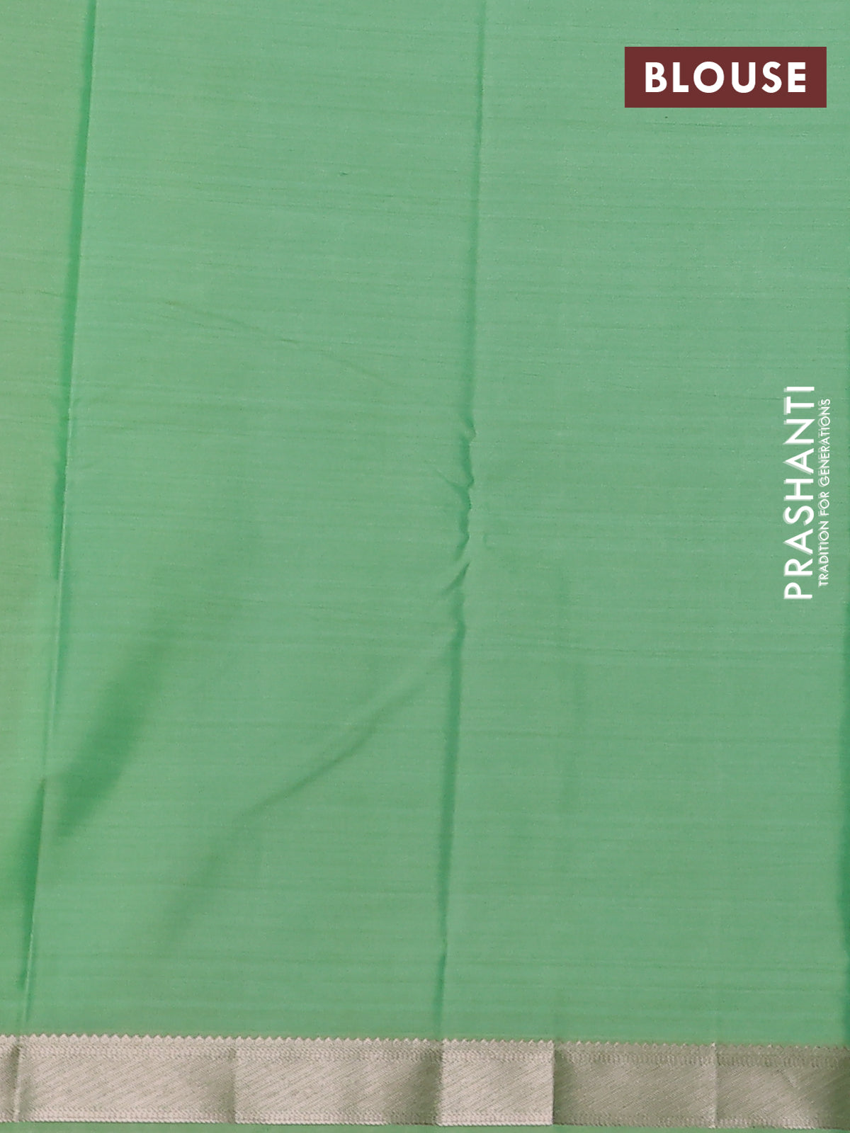 Bangalori semi silk saree light green with allover ikat weaves and zari woven border