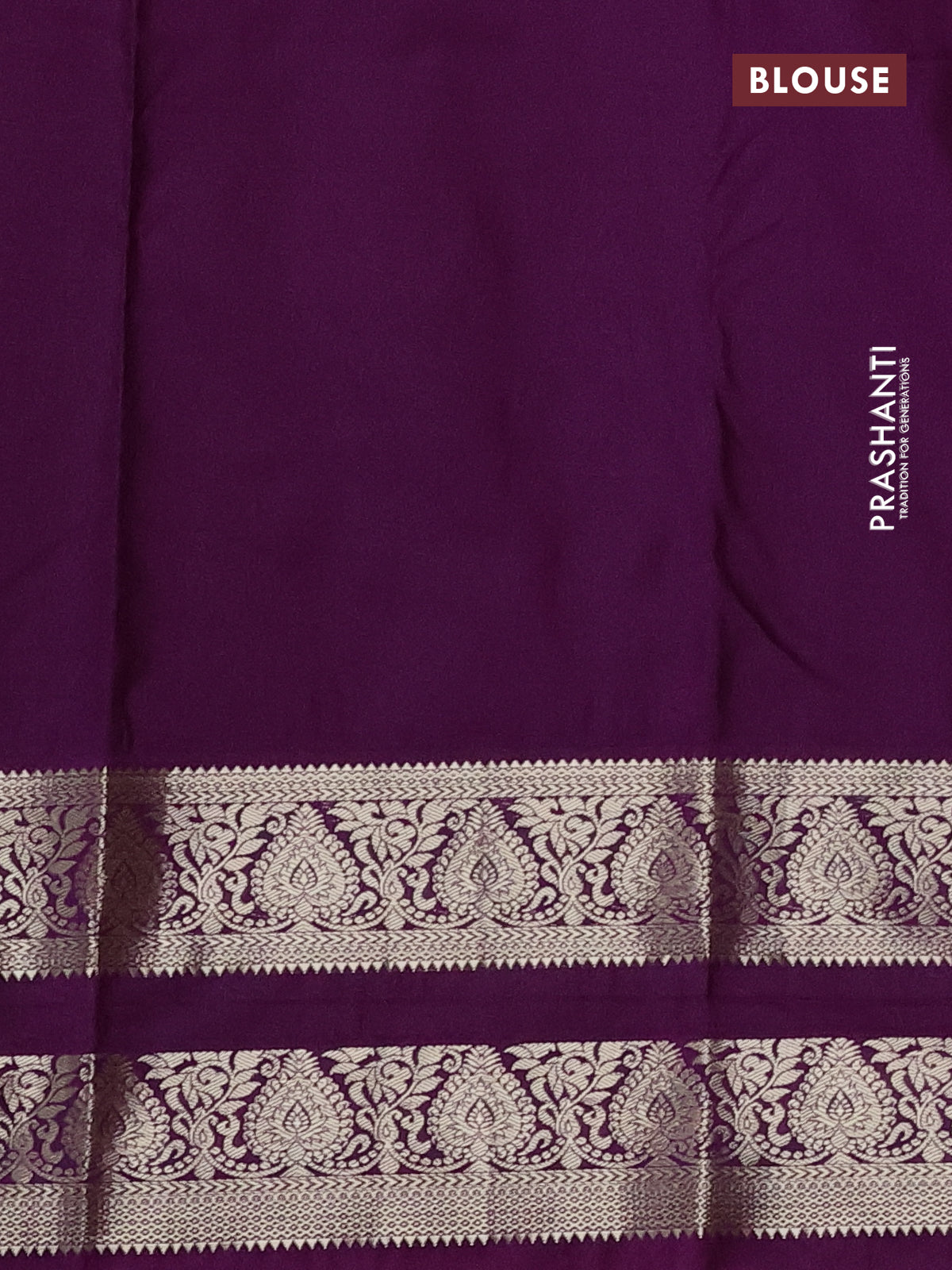 Bangalori silk saree pastel green and deep purple with zari woven buttas and zari woven border