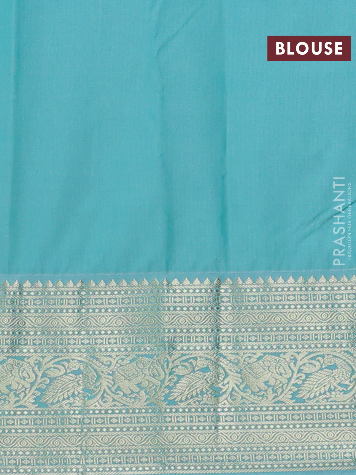Bangalori silk saree red and teal blue with zari woven buttas and zari woven border