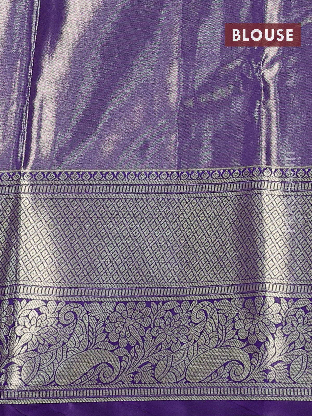 Bangalori tissue silk saree green shade and violet with allover zari woven brocade weaves and long zari woven border