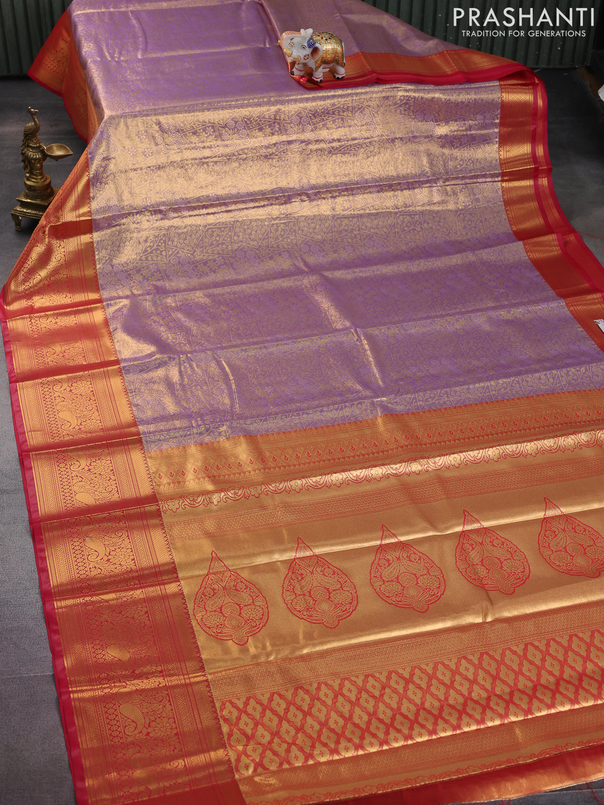 Bangalori tissue silk saree mild lavender and reddish pink with allover zari woven brocade weaves and long zari woven border