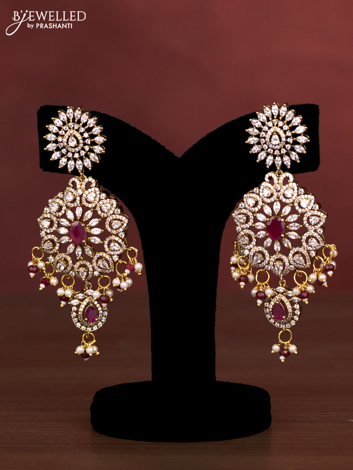 Beaded multilayer maroon haaram with ruby & cz stones and pearl & beads hanging in victorian finish