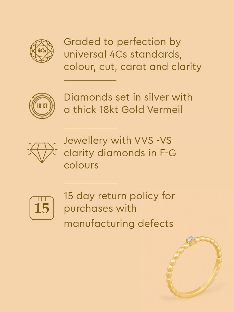 Enjoy the texture of this beaded ring featuring a lab diamond. Made in gold vermeil, it combines playful detailing with a touch of luxury.