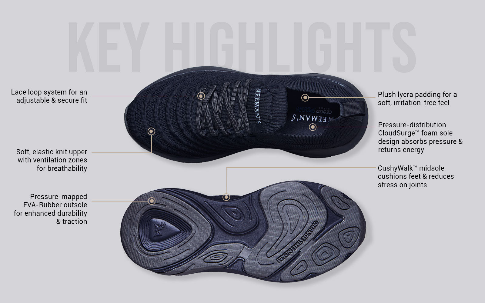 Don’t just walk - CushyWalk™. The Begin Walk Glide sneakers are built for that - Stress-free movement, enhanced airflow and delightful cushioning. With a stretchy knit upper that adapts to your foot, ventilation zones that let it breathe, and CushyWalk™ sole technology that makes every step feel soft and supportive, this pair is all glide and zero grind.
