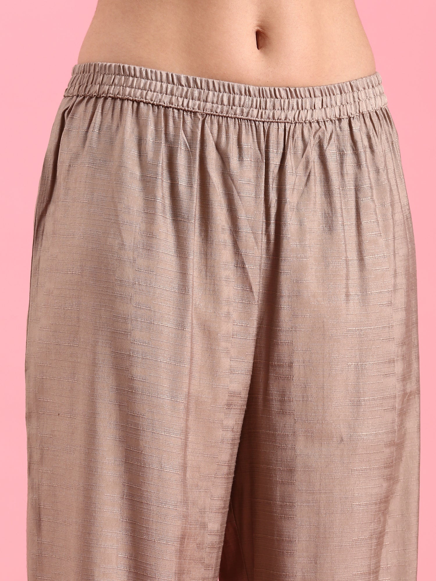Elevate your wardrobe with this Beige Modal Silk Three Piece Suit Set, blending luxurious softness with a sophisticated silhouette. Crafted from premium modal silk, it offers breathable comfort and a silky touch, making it perfect for all-day wear. The coordinated three-piece design ensures a polished, elegant look ideal for formal occasions or stylish office wear. Embrace timeless elegance and confidence in a suit that moves with you effortlessly.