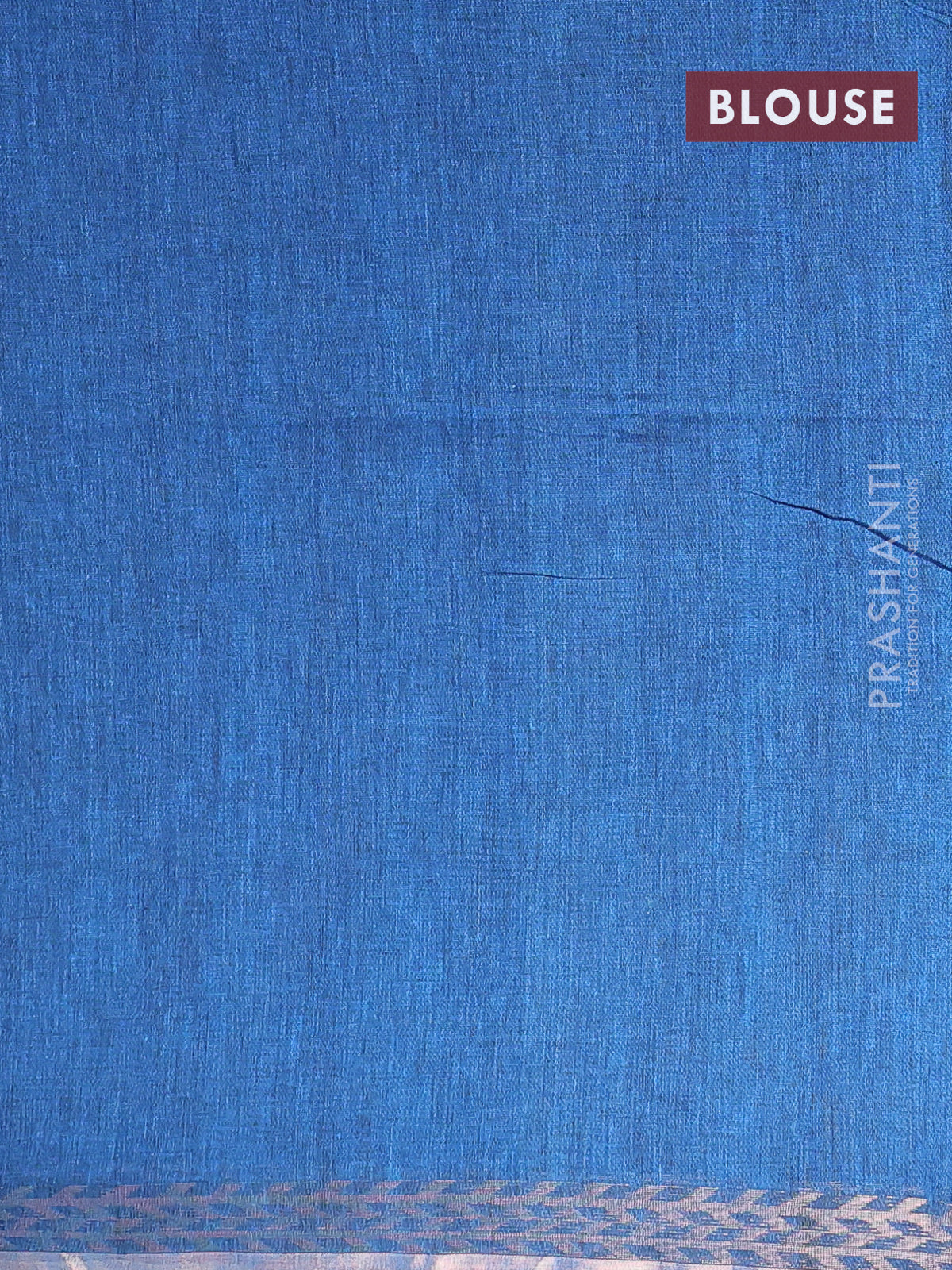 Bengal soft cotton saree cs blue with plain body and zari woven border