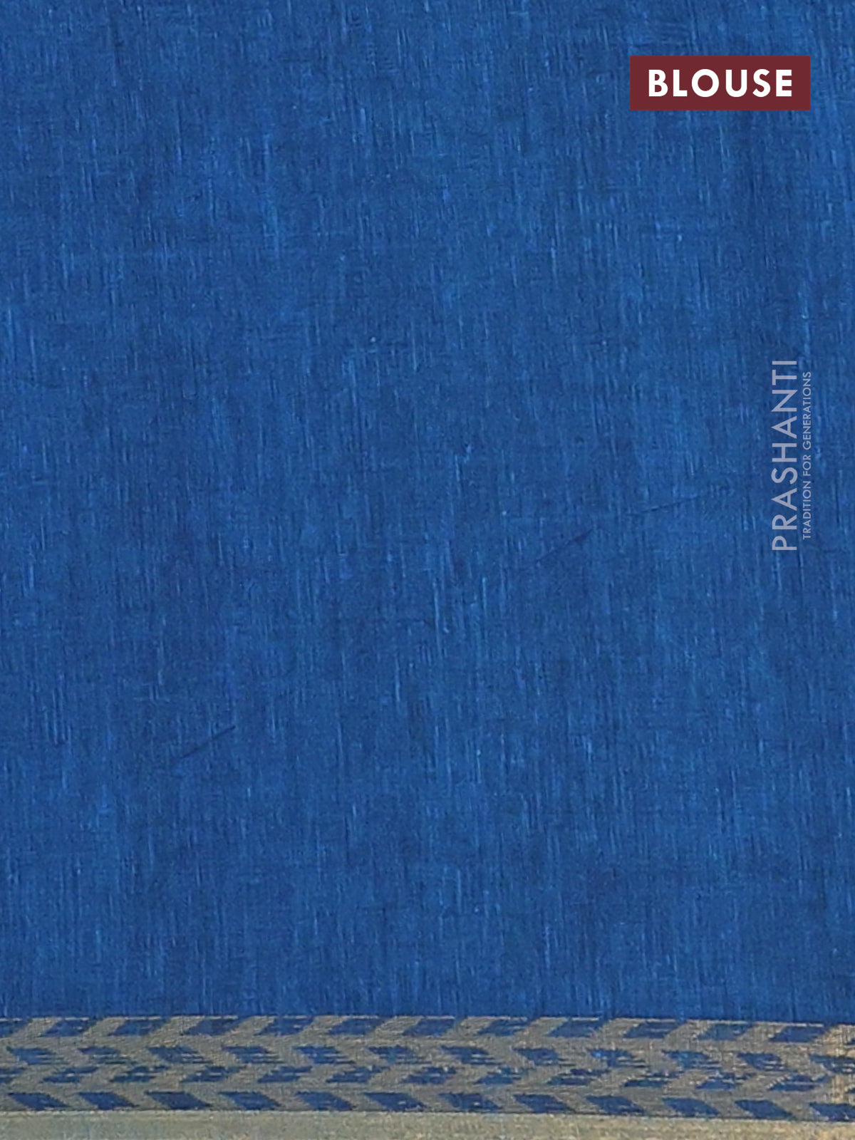 Bengal soft cotton saree cs blue with plain body and zari woven border