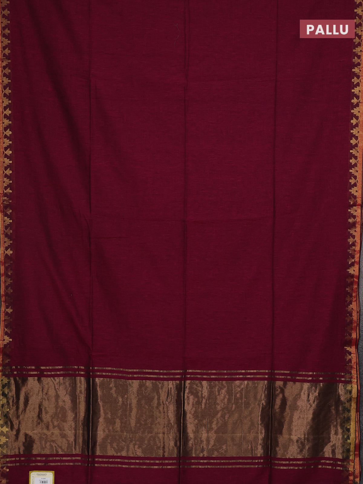 Bengal soft cotton saree dark magenta pink and green with plain body and zari woven border