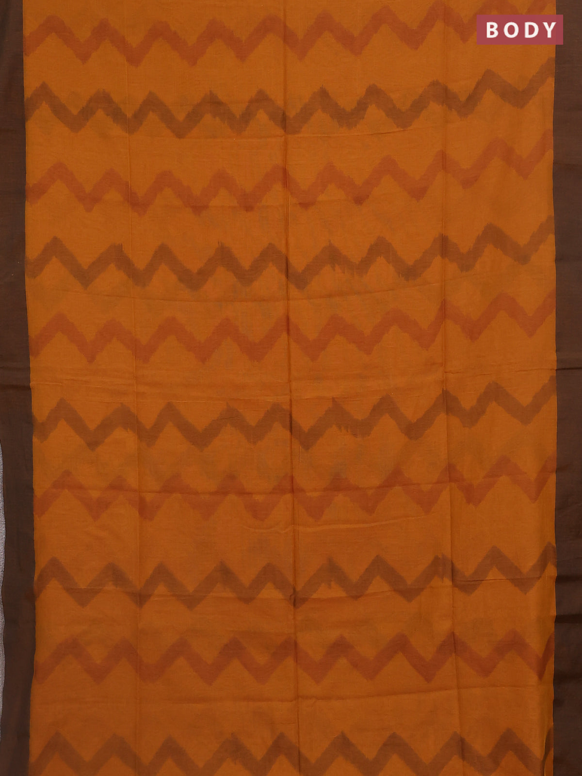 Bengal soft cotton saree dark mustard and black with allover weaves and simple border