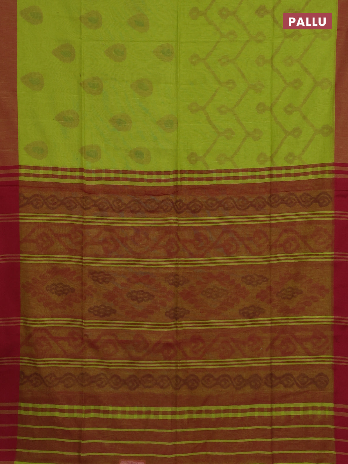 Bengal soft cotton saree light green and maroon with allover butta weaves and simple border