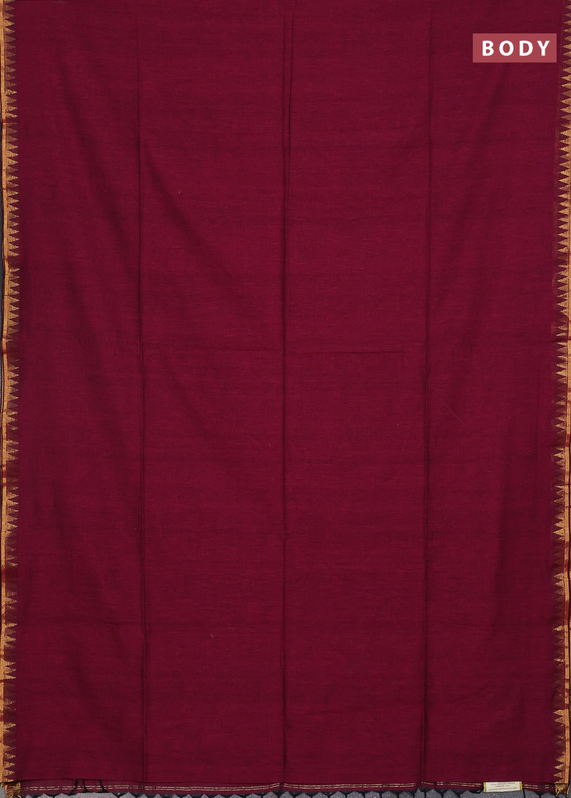 Bengal soft cotton saree magenta pink and peacock blue with plain body and zari woven border