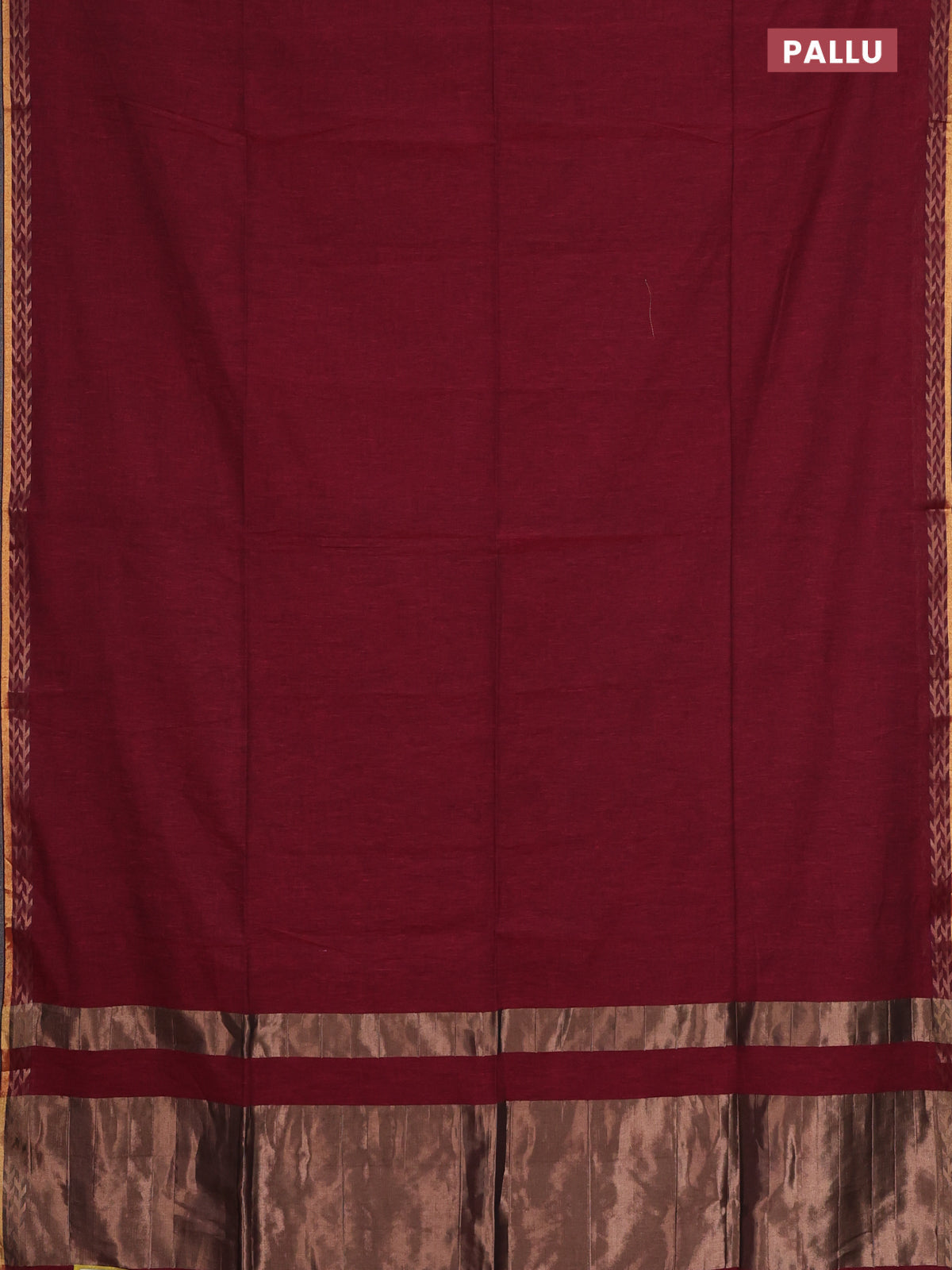 Bengal soft cotton saree maroon and blue with plain body and zari woven border