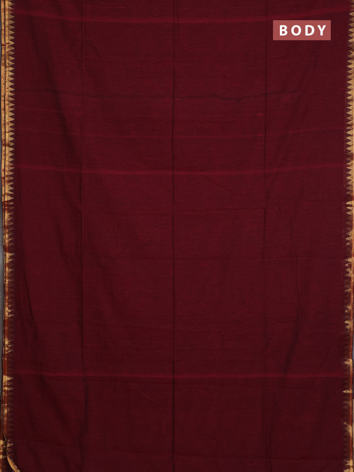 Bengal soft cotton saree maroon and blue with plain body and zari woven border