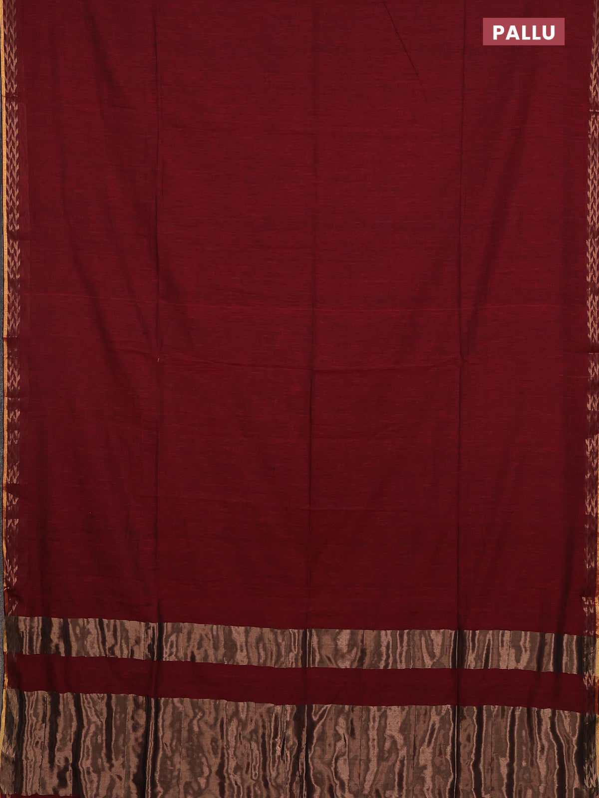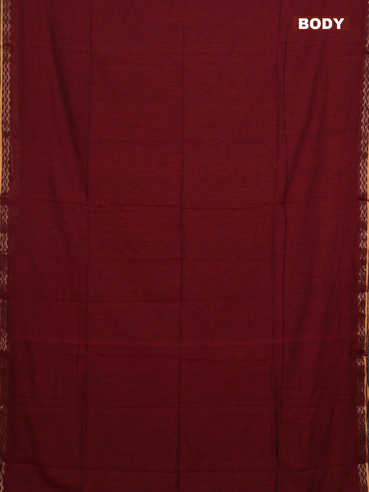 Bengal soft cotton saree maroon and mustard yellow with plain body and zari woven border