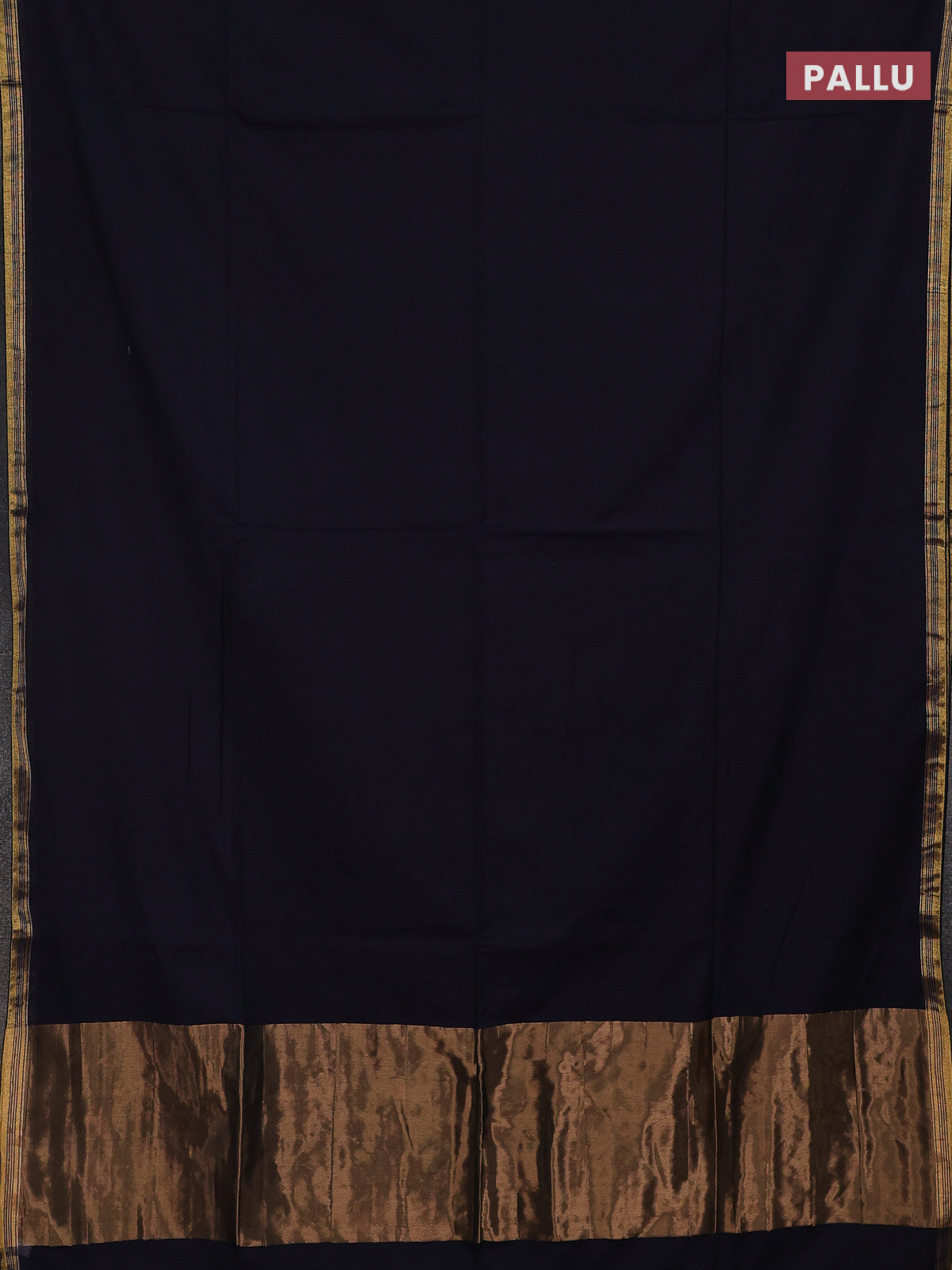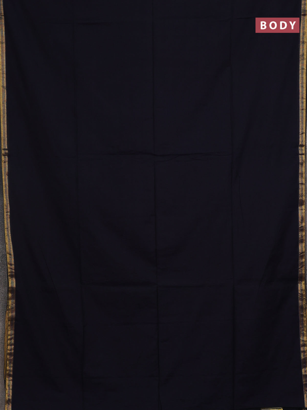 Bengal soft cotton saree navy blue and green with plain body and zari woven border