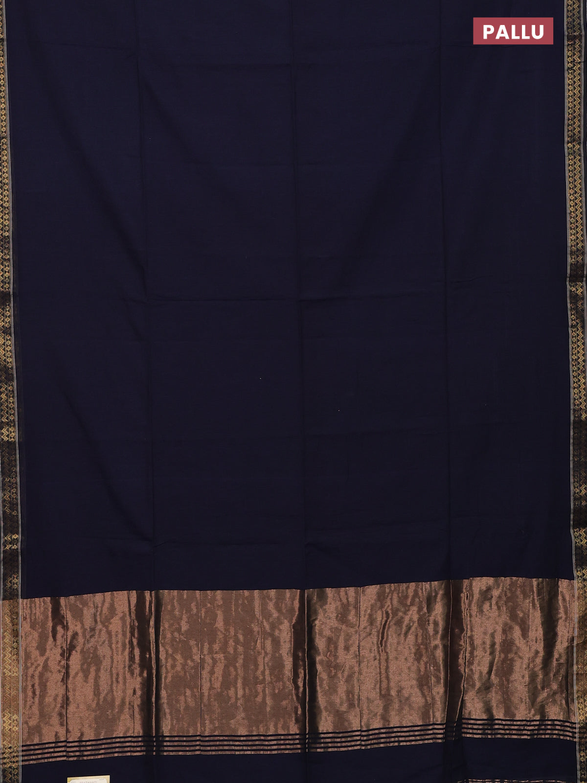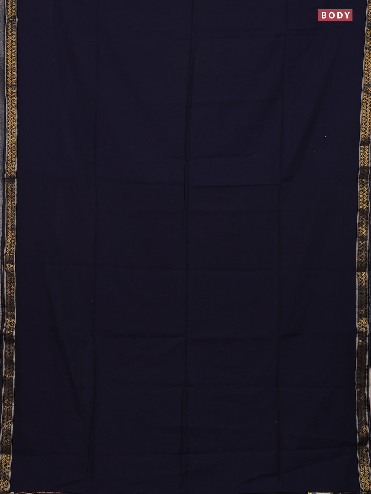 Bengal soft cotton saree navy blue with plain body and zari woven border