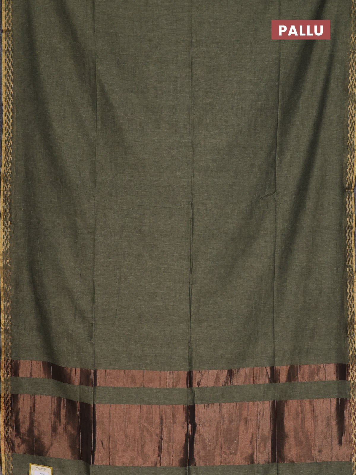 Bengal soft cotton saree pastel green and dark mustard with plain body and zari woven border