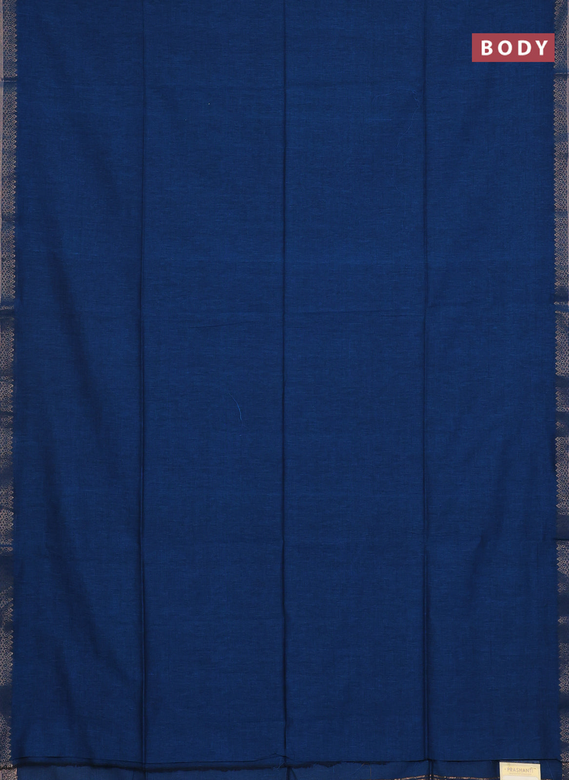 Bengal soft cotton saree peacock blue and maroon with plain body and zari woven border