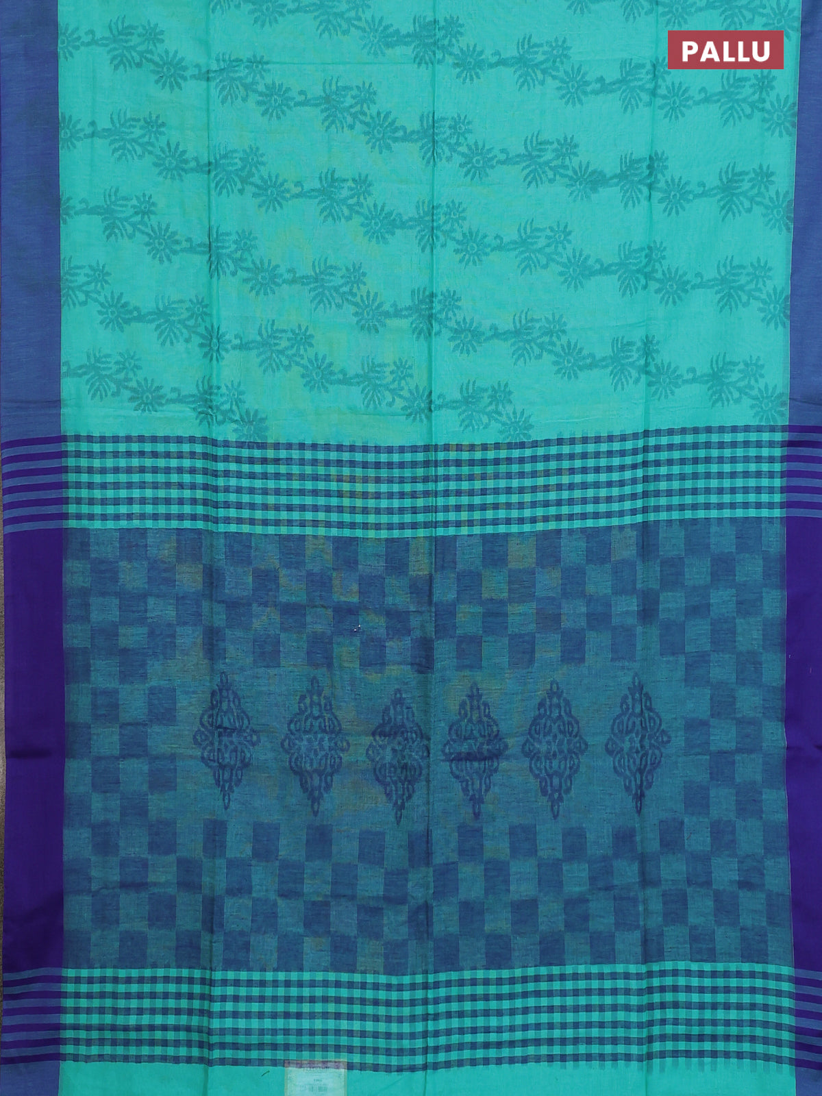 Bengal soft cotton saree teal blue and navy blue with allover weaves and simple border