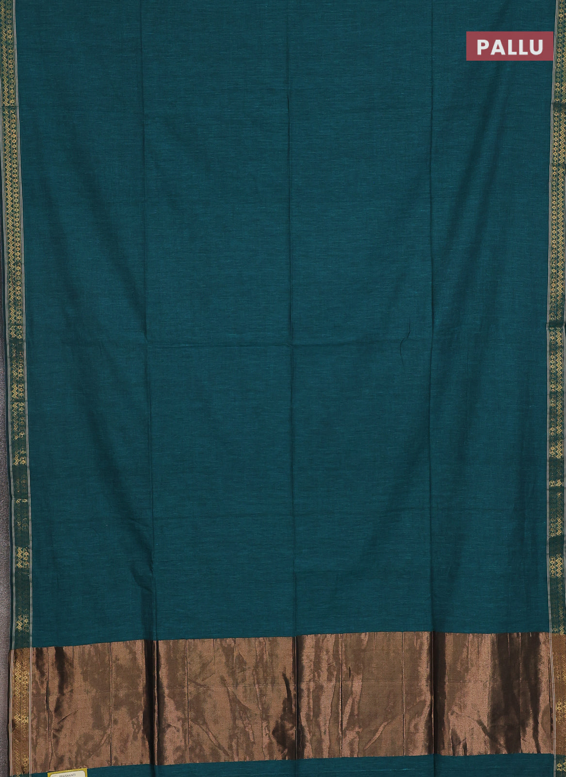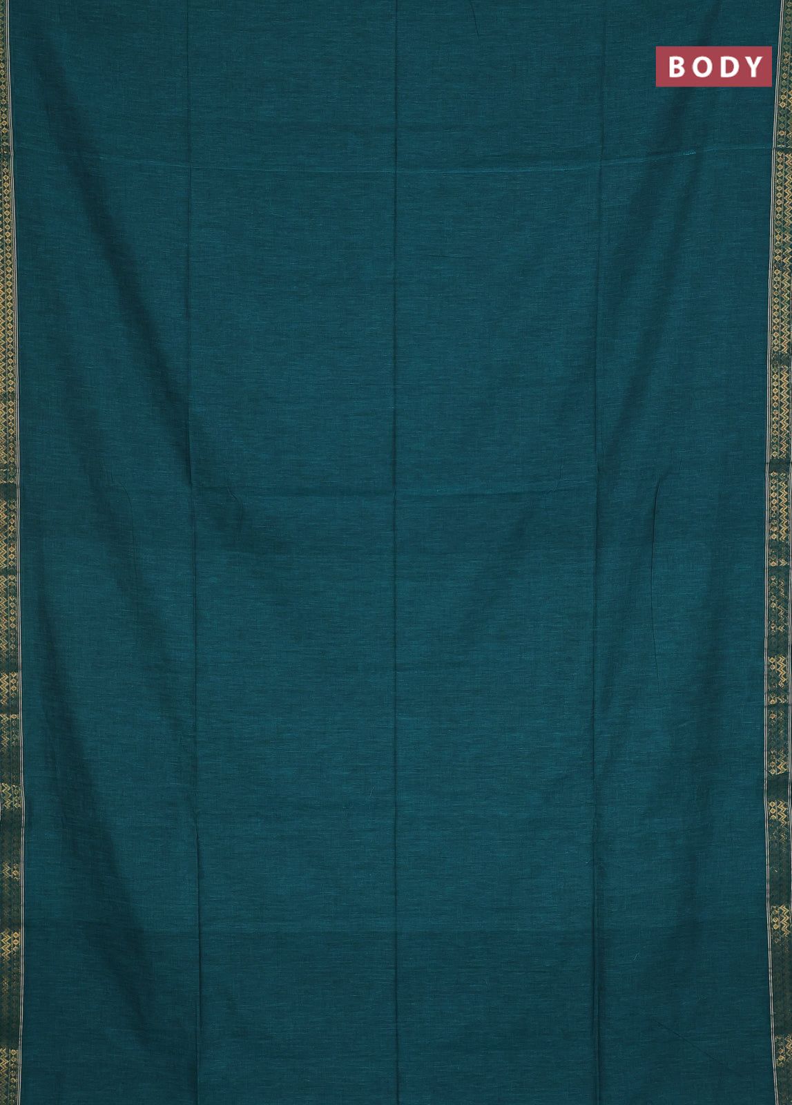 Bengal soft cotton saree teal green and deep maroon with plain body and zari woven border