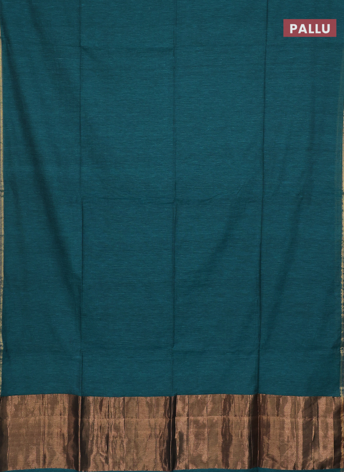 Bengal soft cotton saree teal green and maroon with plain body and zari woven border