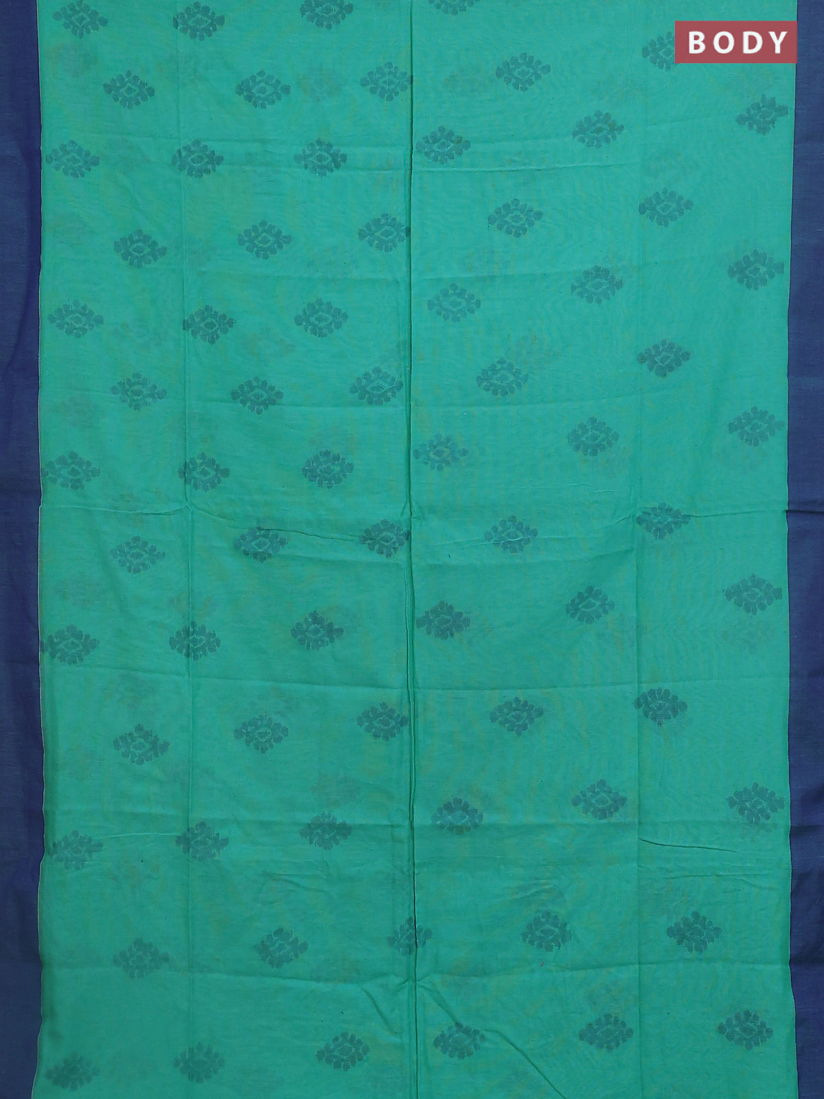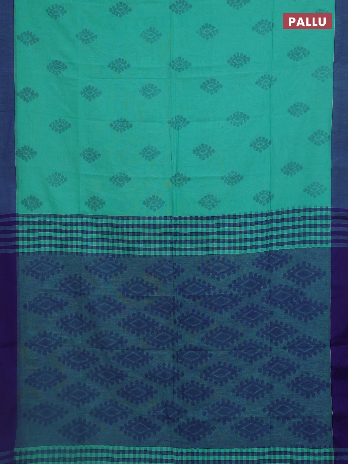 Bengal soft cotton saree teal green shade and blue with allover butta weaves and simple border