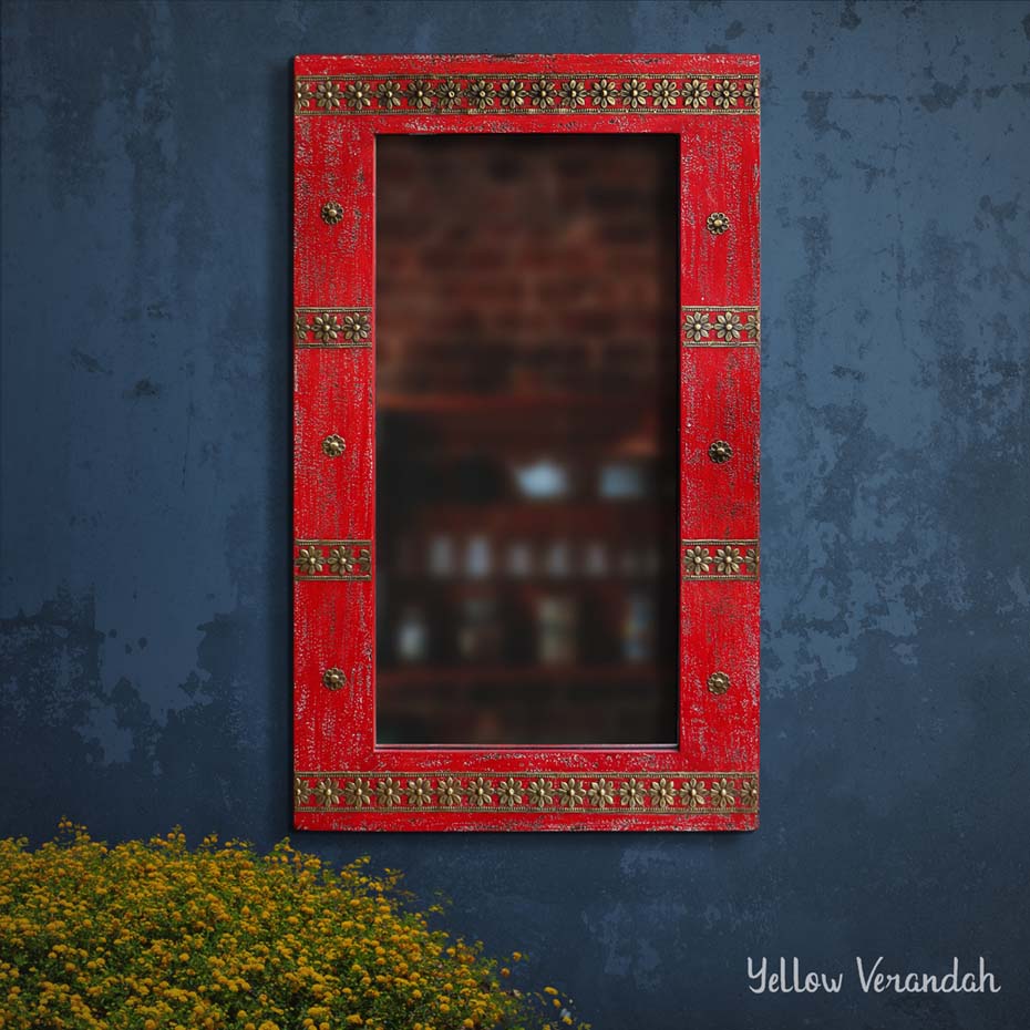 Bikaneri Distressed Mirror - Red