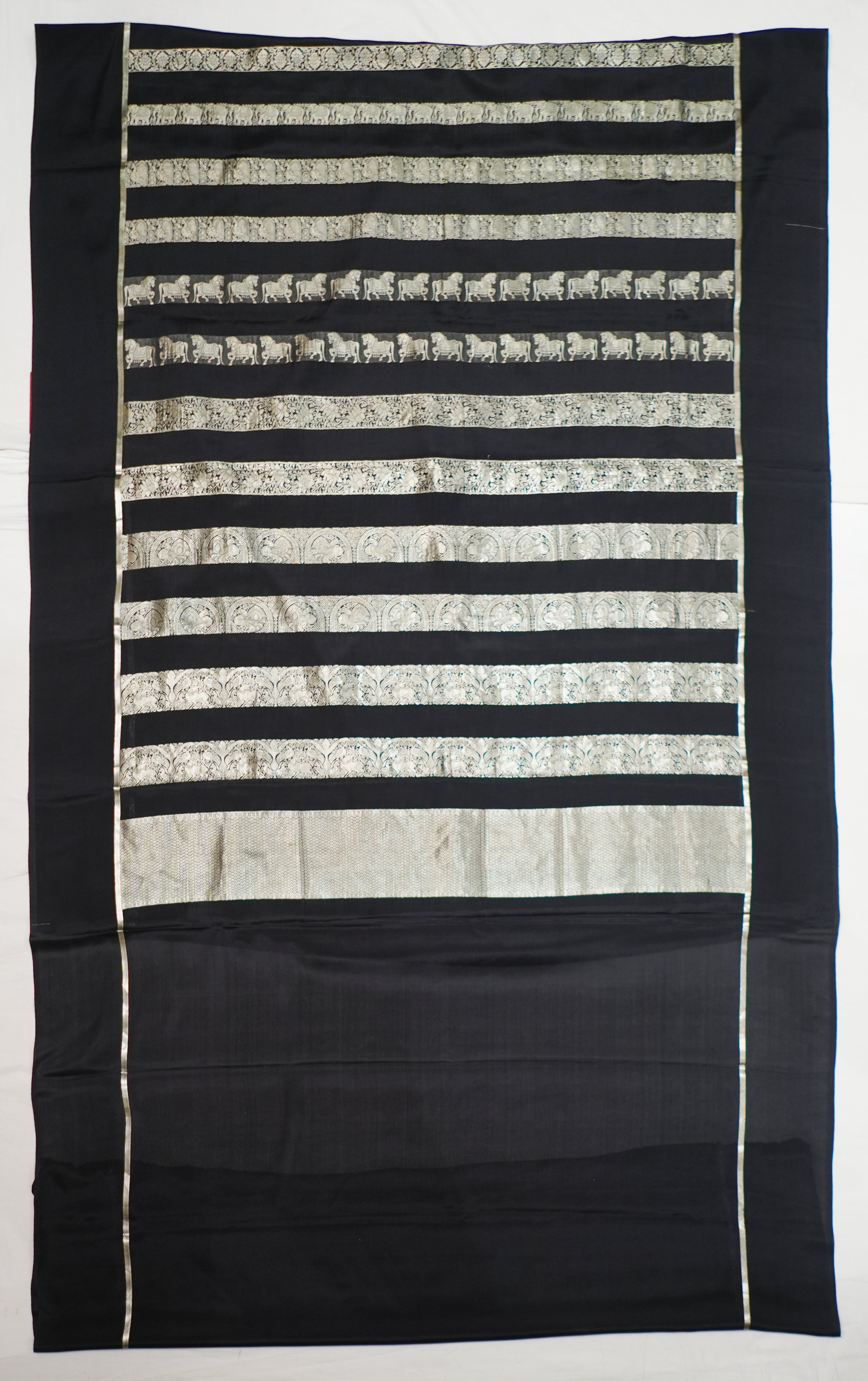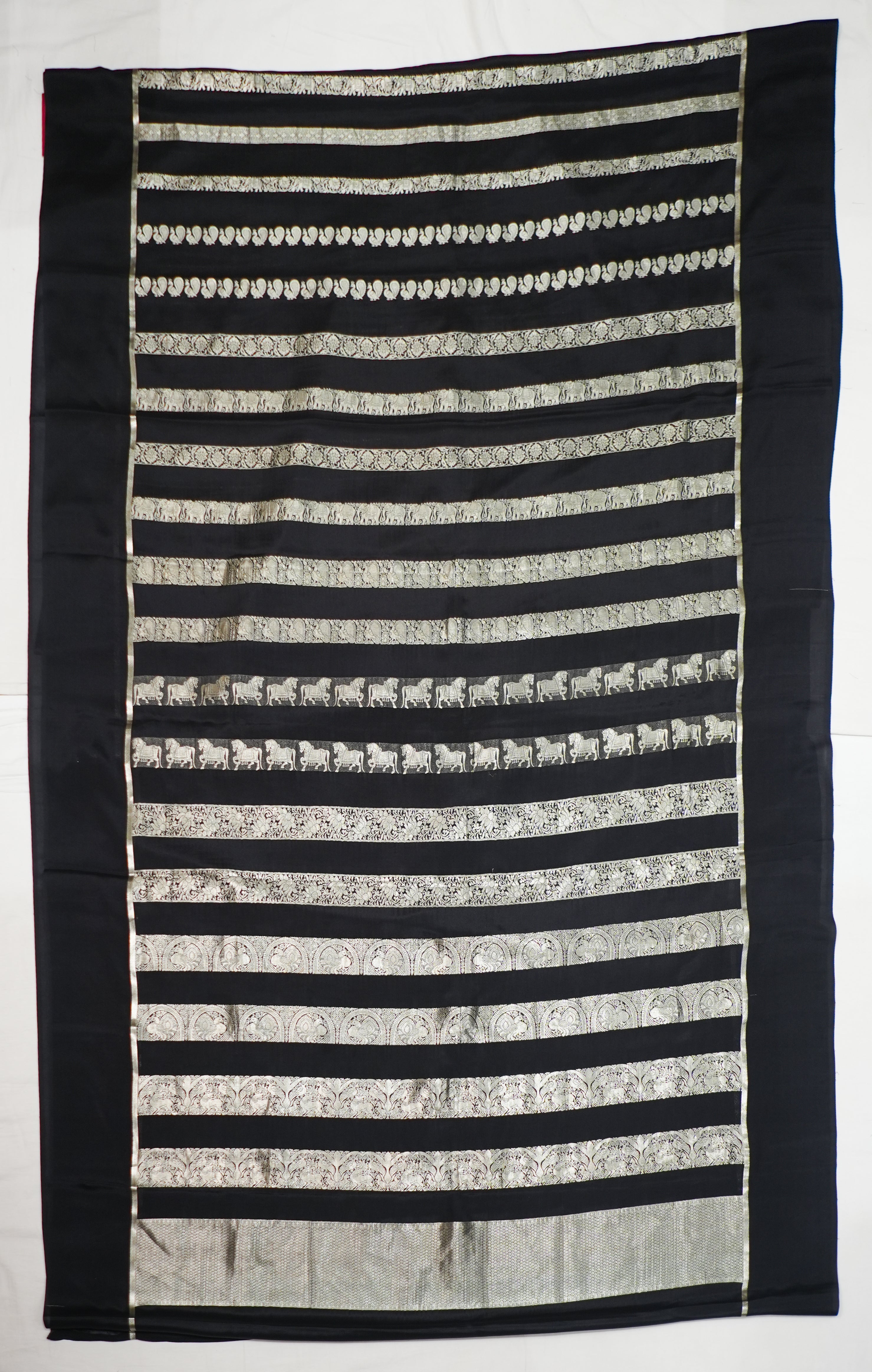 Elevate your ethnic wardrobe with this stunning Black Banaras Silk Zari and Handwoven Saree. Crafted from luxurious silk, this traditional piece features intricate zari work that catches light beautifully, making it perfect for weddings, festivals, and special occasions. The handwoven construction ensures each saree is unique, showcasing the artistry of skilled weavers. The rich black base provides versatility and elegance, allowing you to style it with various blouses and accessories. Drape yourself in timeless sophistication and celebrate your cultural heritage with this exquisite saree that promises comfort and grace.