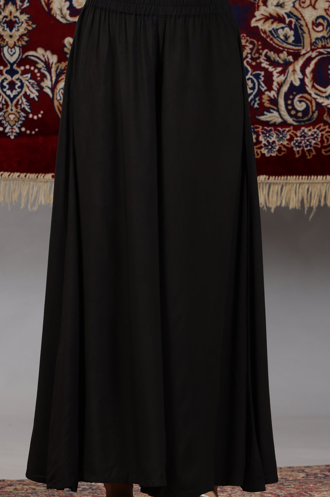 Black Floral Printed High-Slit Flared Kurta, Palazzos and Dupatta Set