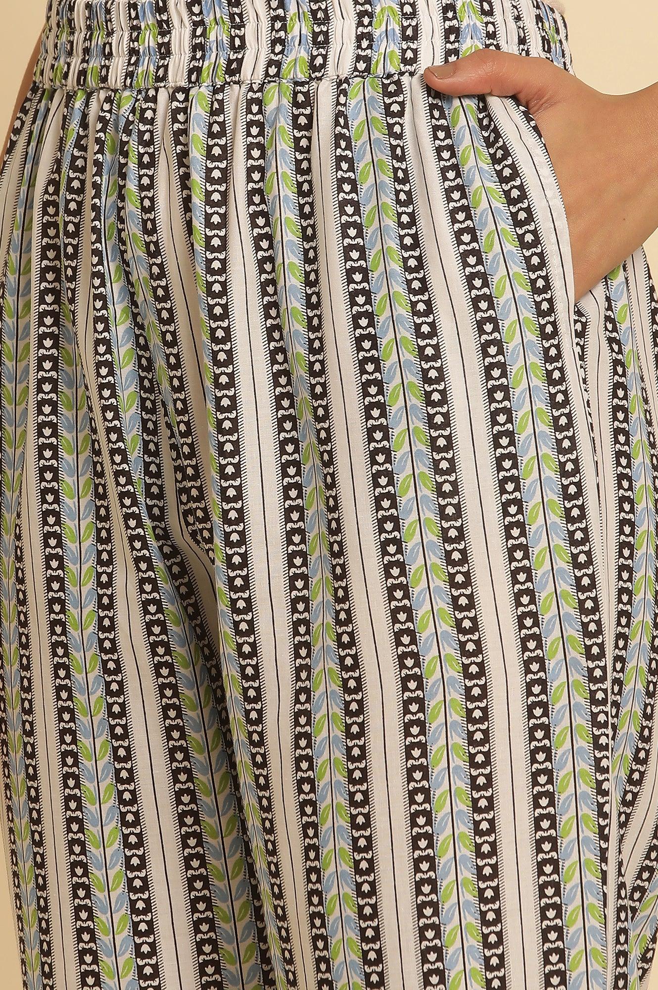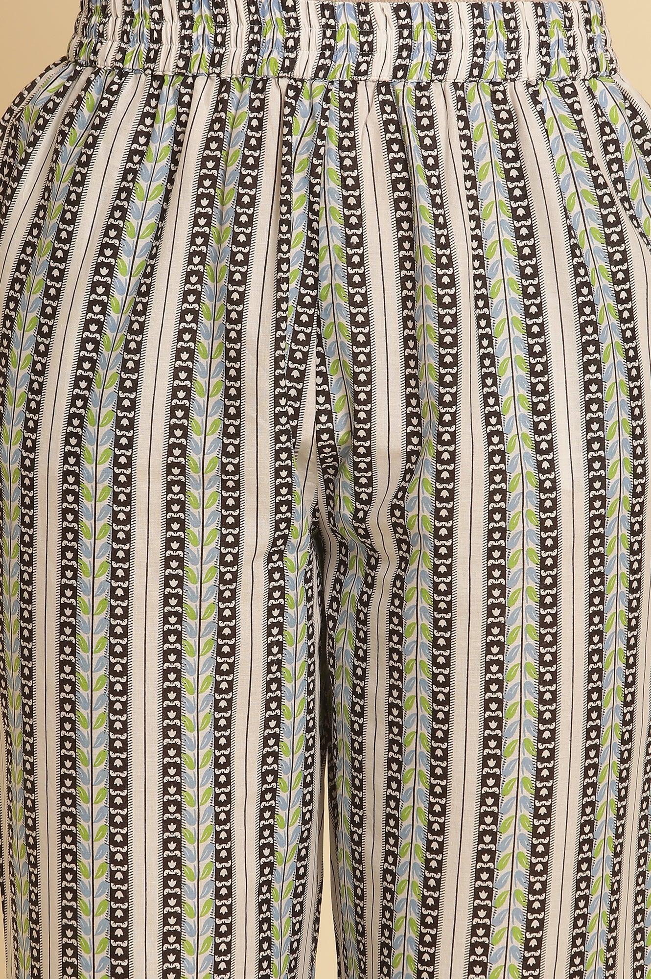 Embrace elegance with this ethnic set featuring a kurta and straight pant ensemble. The round neckline kurta, adorned with a beautiful floral print, is crafted from 100% pure cotton, ensuring breathability and comfort. The black color adds a touch of sophistication, while the three-quarter sleeves offer versatility for various occasions. The straight-cut pants complement the kurta perfectly, creating a balanced silhouette. This woven set is ideal for casual wear, allowing you to showcase your ethnic style with ease. The combination of traditional design and modern aesthetics makes this set a wardrobe essential for the contemporary woman. Pair it with stylish sandals to complete the look, exuding effortless elegance. Versatile and timeless, this outfit is perfect for making a statement at any occasion, day or night.