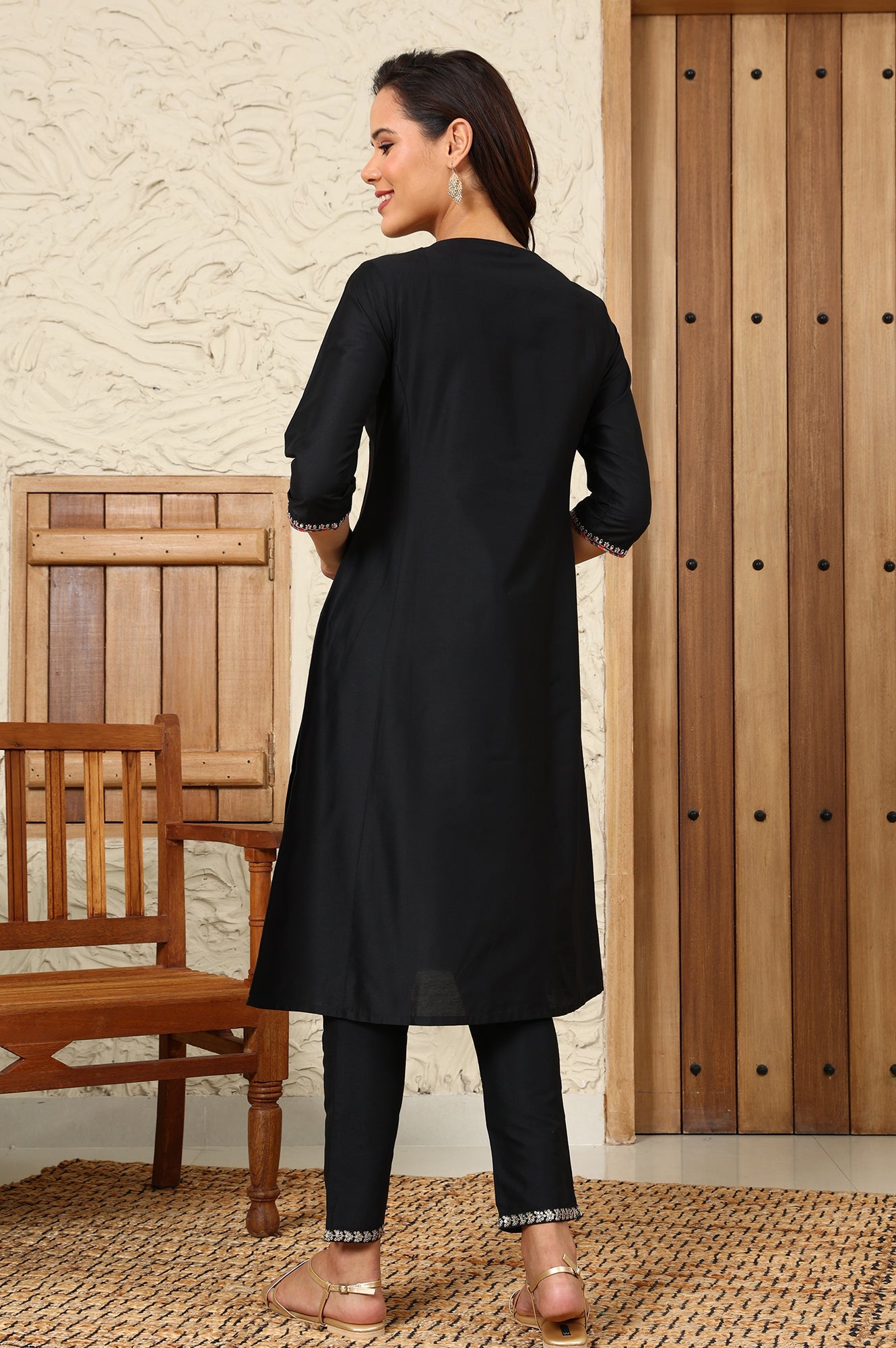 Elevate your festive style with our black solid dori embroidered straight kurta. This classic black kurta exudes sophistication with its sleek, straight-cut silhouette, offering a timeless and versatile look. The kurta features exquisite dori embroidery, meticulously crafted to add a touch of intricate elegance and sparkle to the design. The rich black fabric serves as a perfect canvas for the delicate embroidery, enhancing its festive charm. Ideal for special occasions and celebrations, this kurta combines understated luxury with modern grace, ensuring you stand out with effortless poise and style.