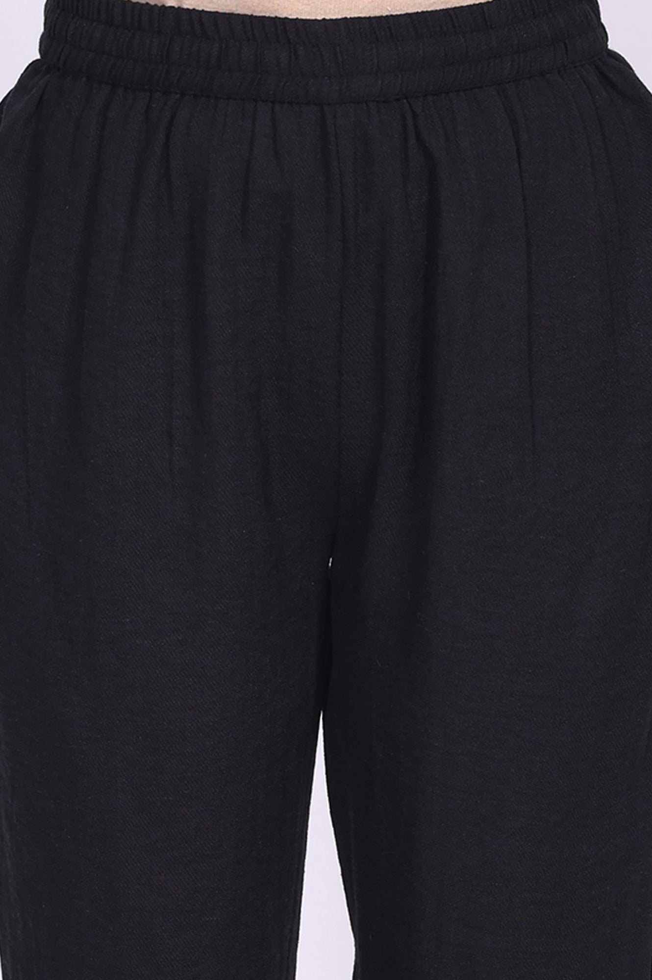 Black Solid Rayon Blend Straight Kurta with Straight Pant and Shawl Set