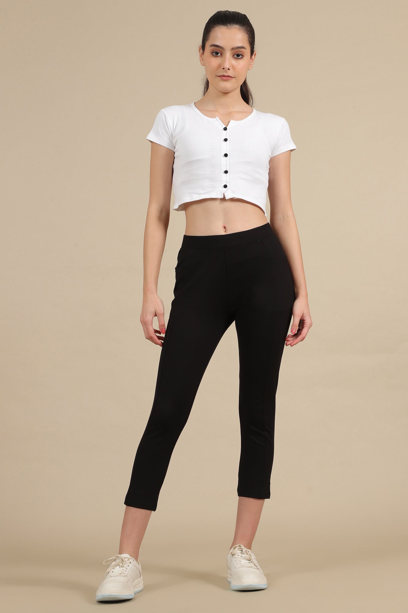 Black Solid Skinny Fit Yoga Tights With Elasticated Waist