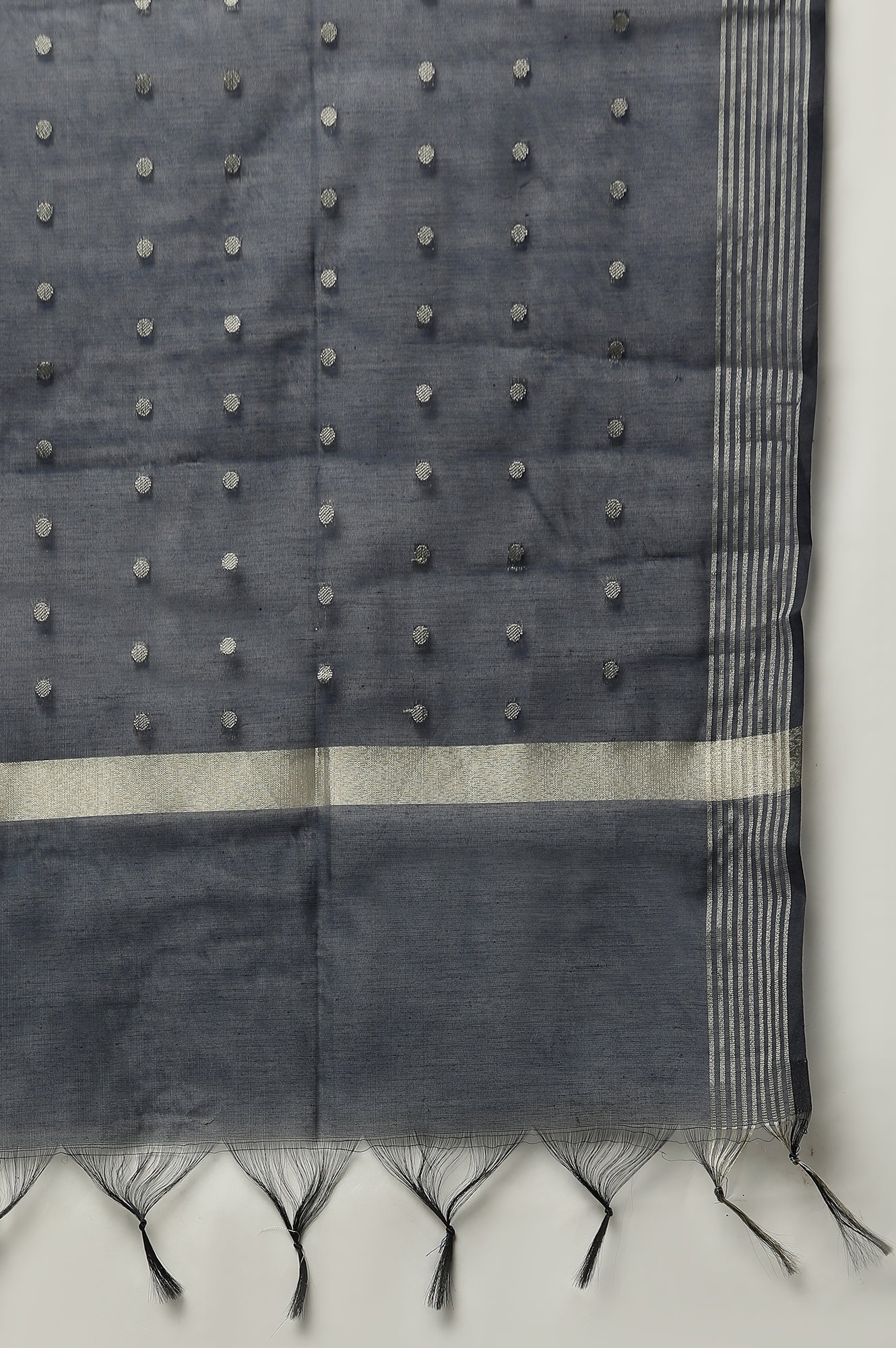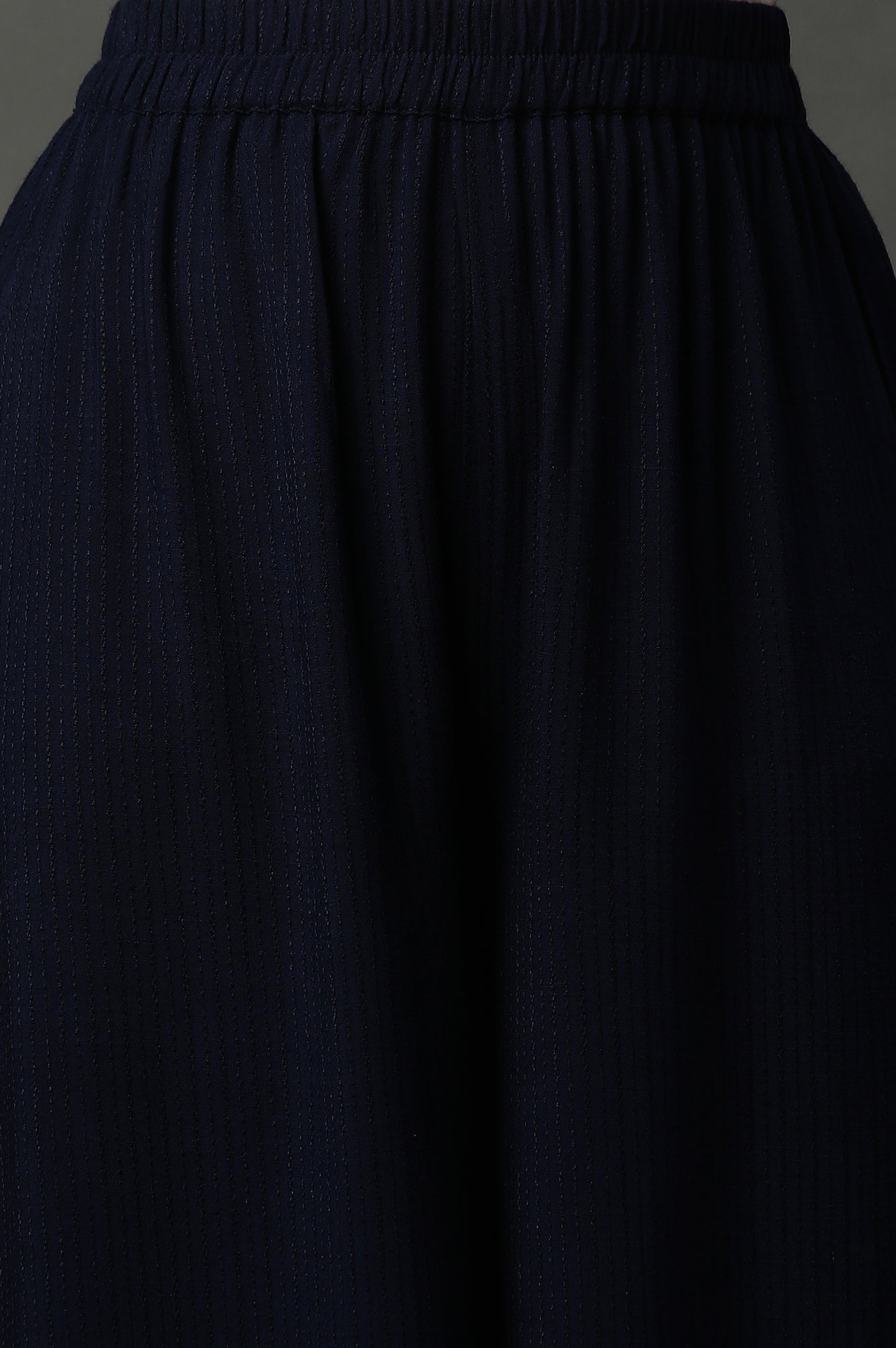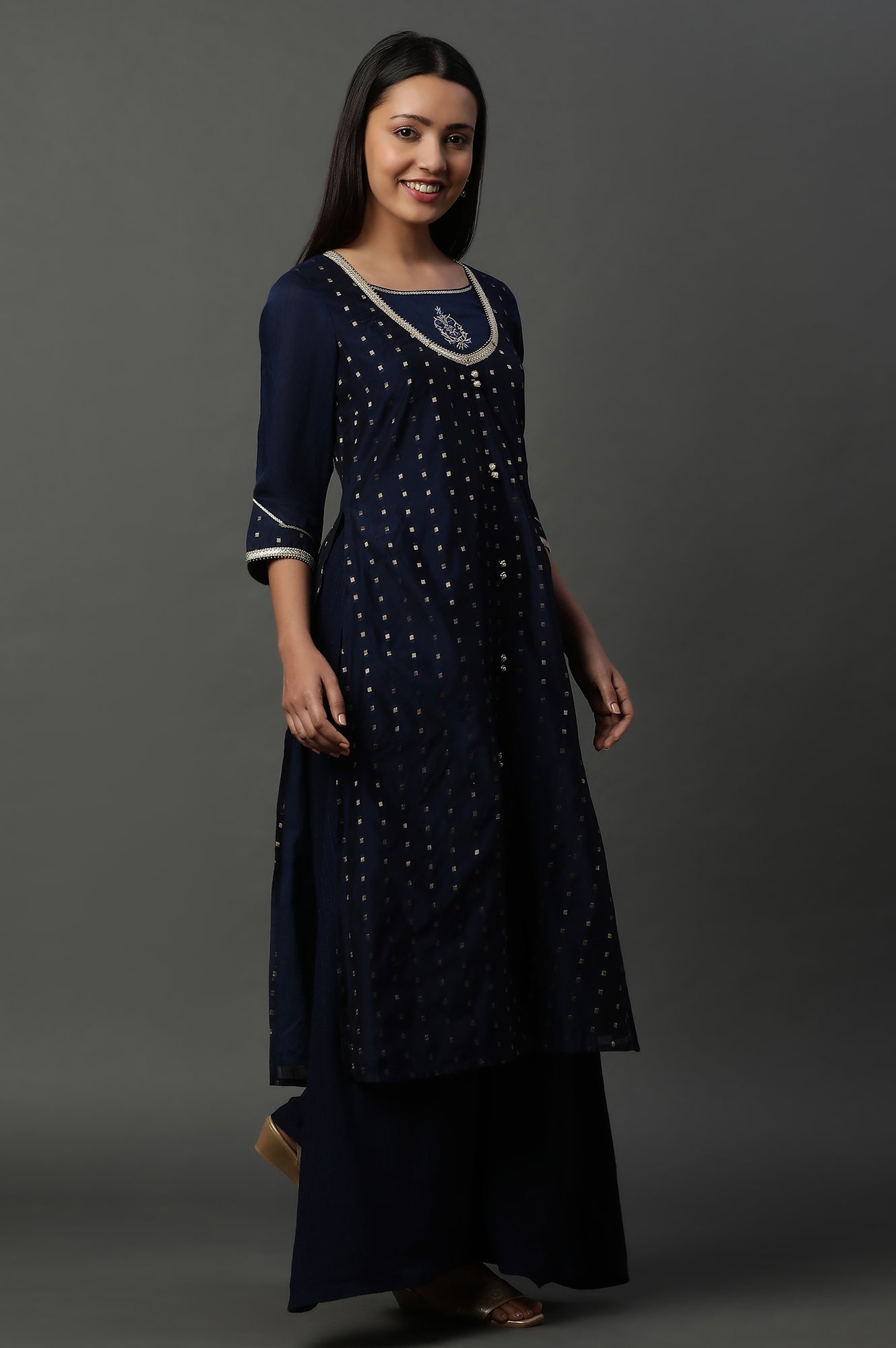 Blue A-line Jacquard Kurta, Palazzos and Dupatta Set