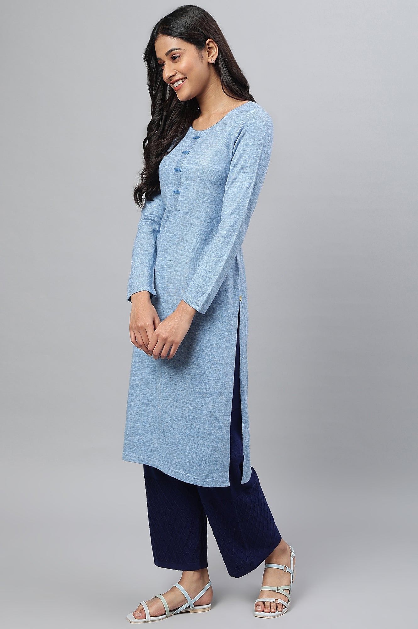 A Classic Silhouette With An Interesting Feature At The Placket Is All You Need For Your Perfect Work Day Look. Slip Into This Straight kurta That Has An Interlocking Tab Placket Detail Accentuated With Tonal coloured Interlocked Loop Details. Throw It On With Our White Bottoms .