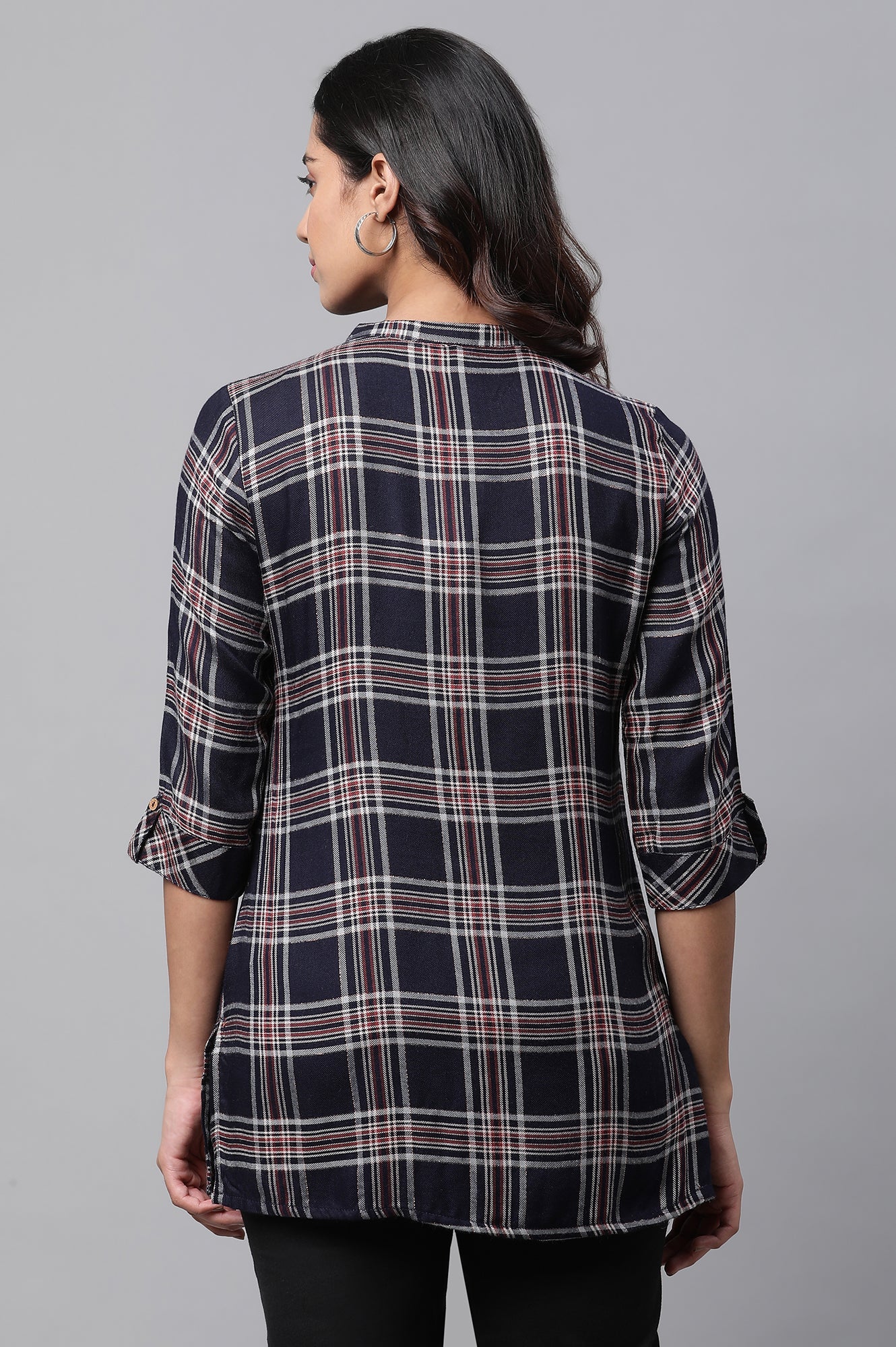 Amp up your casual look with this stylish short kurti by Aurelia. Crafted in premium fabric, it has checks all over and band collar with placket.