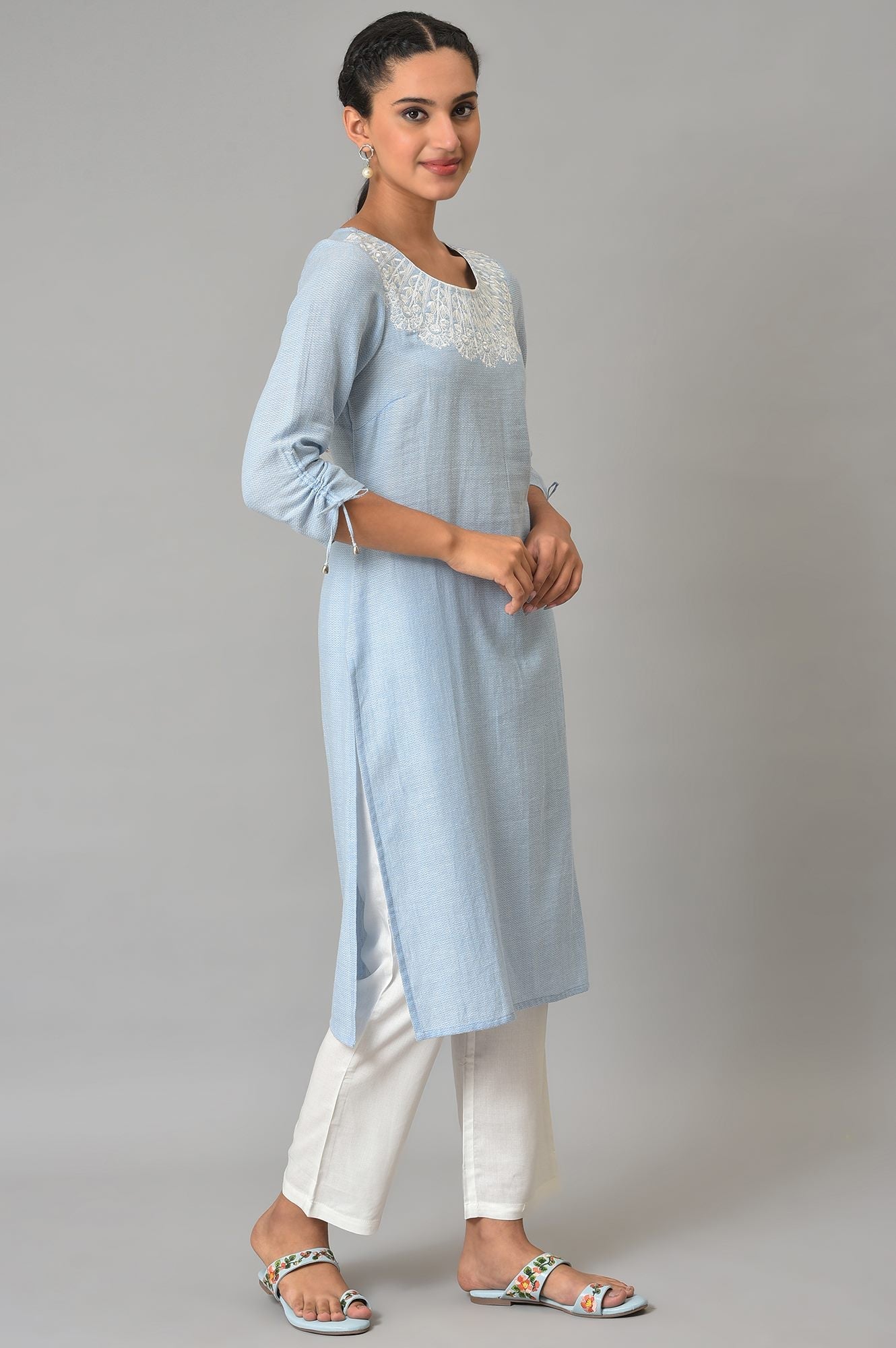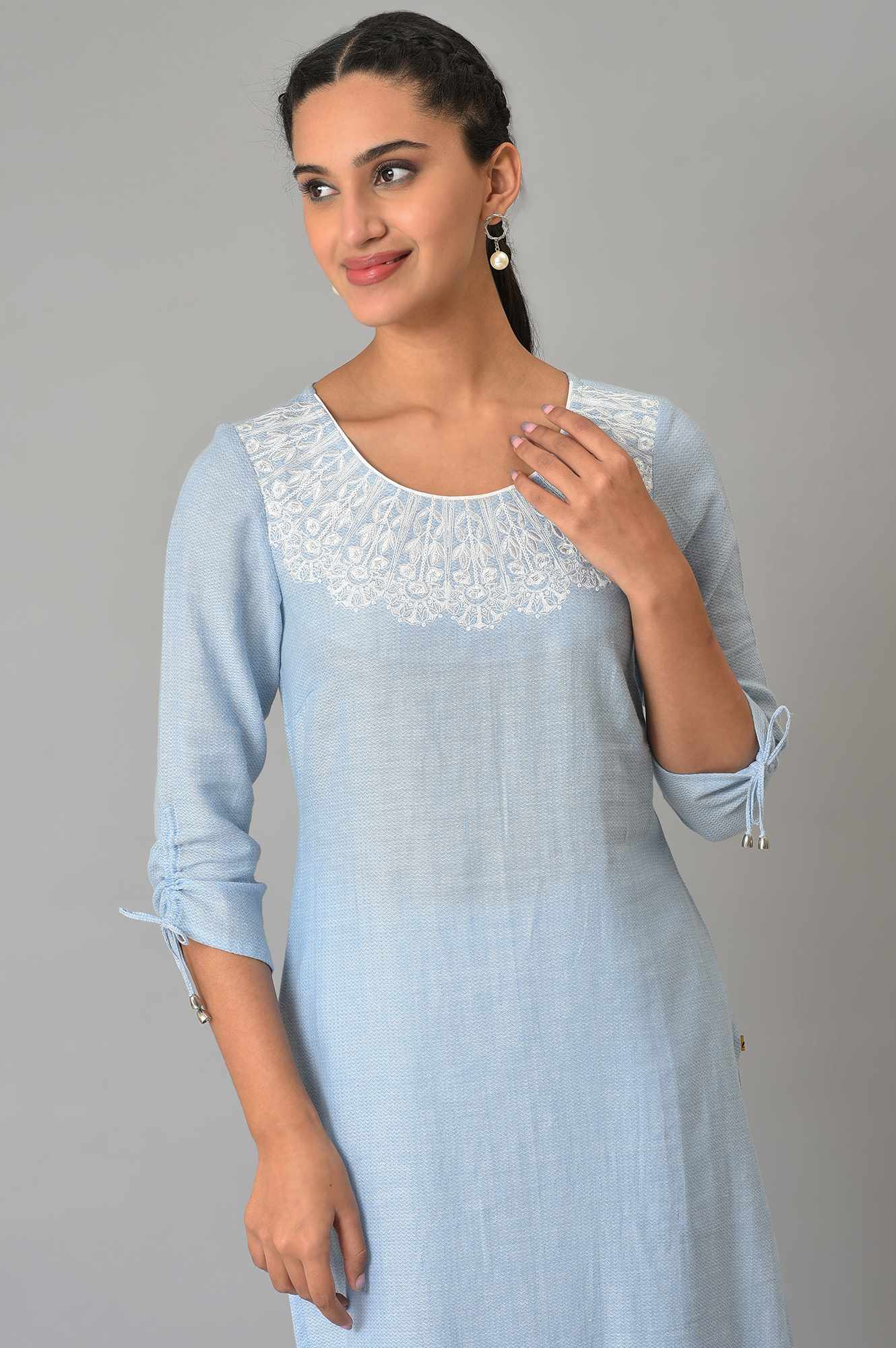 This Straight kurta Features A Delicate Dori Embroidery In Pristine White Thread And White Matt Sequins. It Also Has A Tunnel Detail In The Sleeves That Adds Delicacy To The Look.