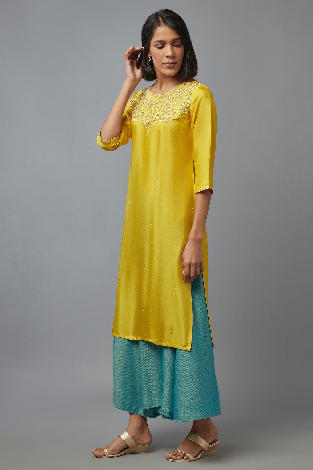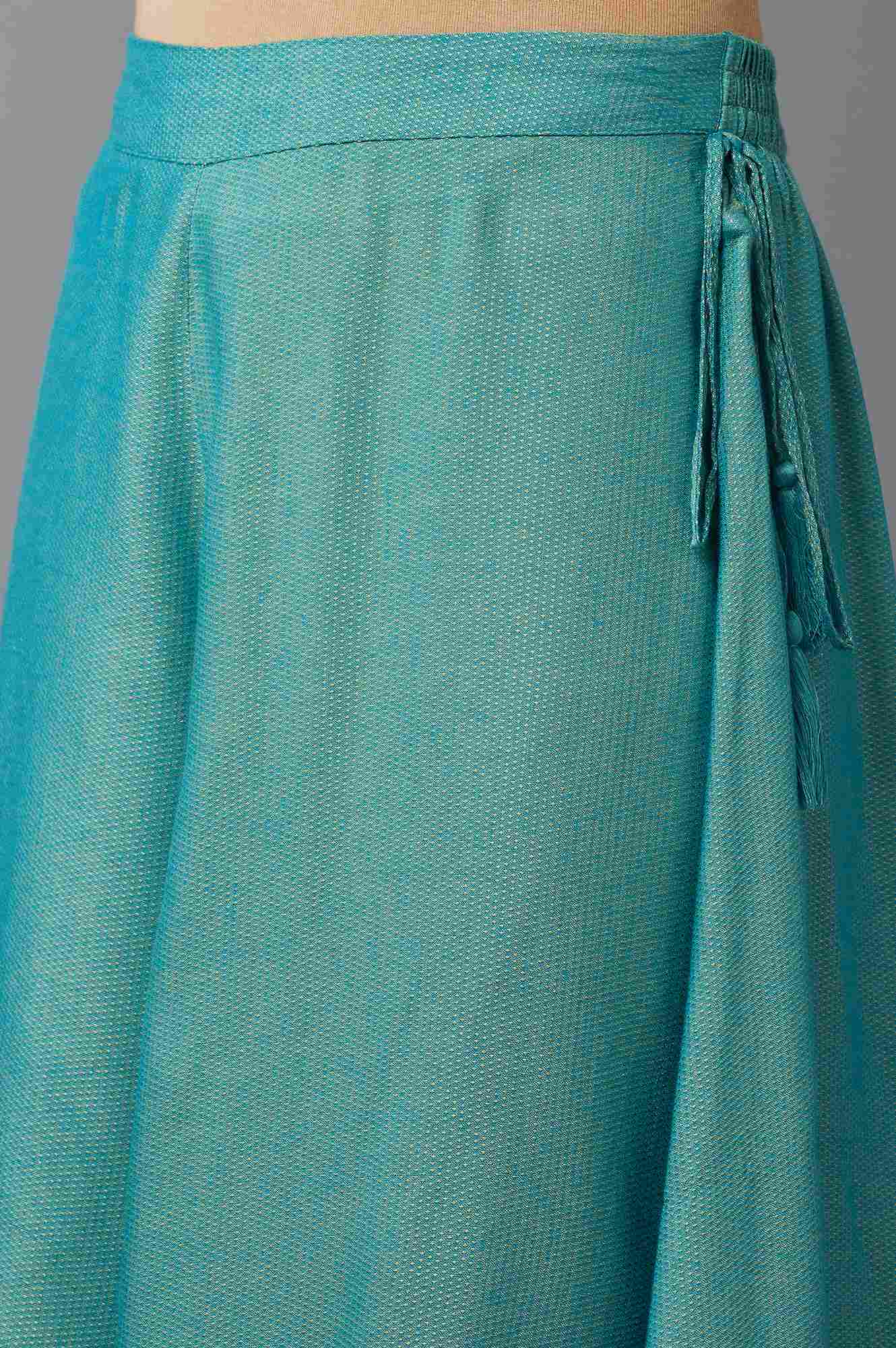 Blue solid straight fit palazzos with elasticated back and tie-up detail.