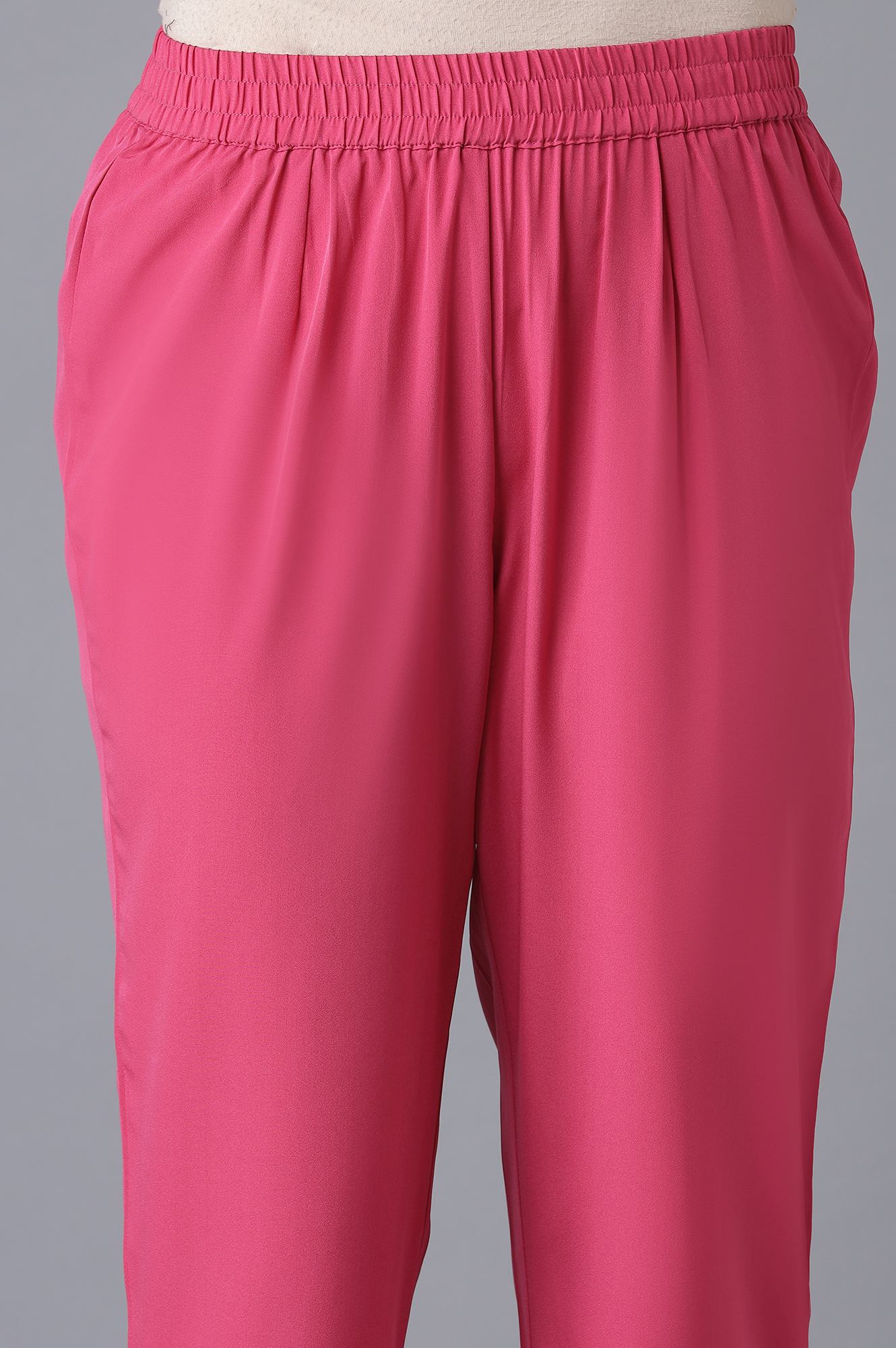 Elevate your casual day or office look by wearing this blue floral print kurta in straight silhouette. It is paired with pink tousers that add a class in your look.