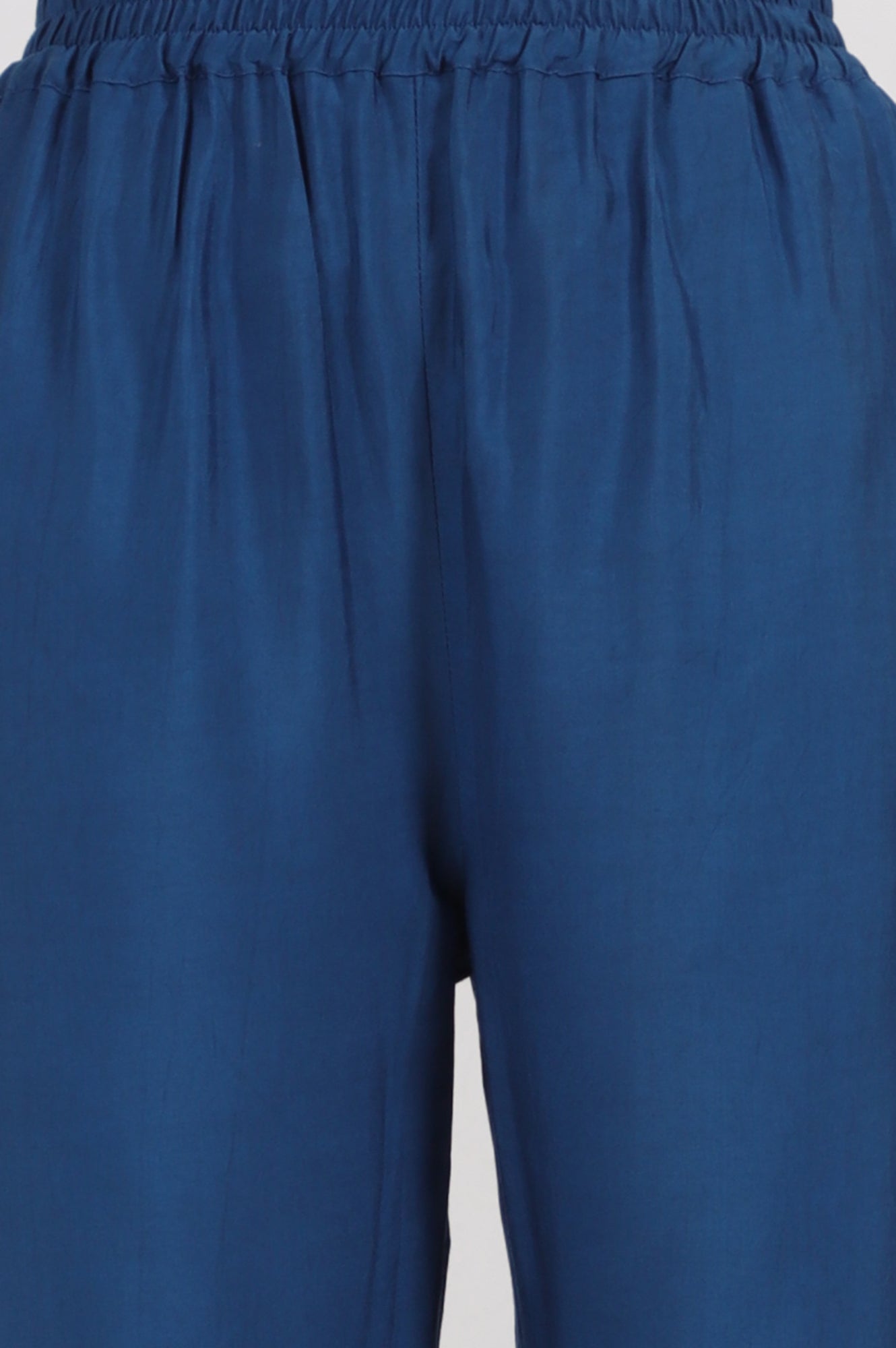 Blue Floral Printed Chiffon Spaghetti Gathered Kurta, Pants and Dupatta Set