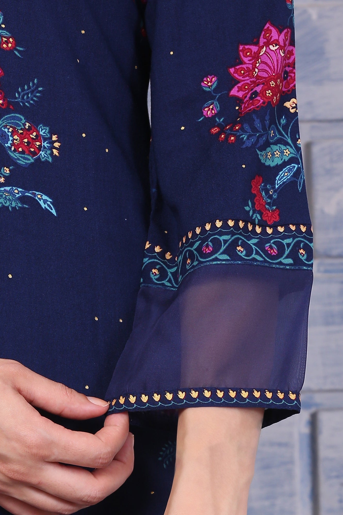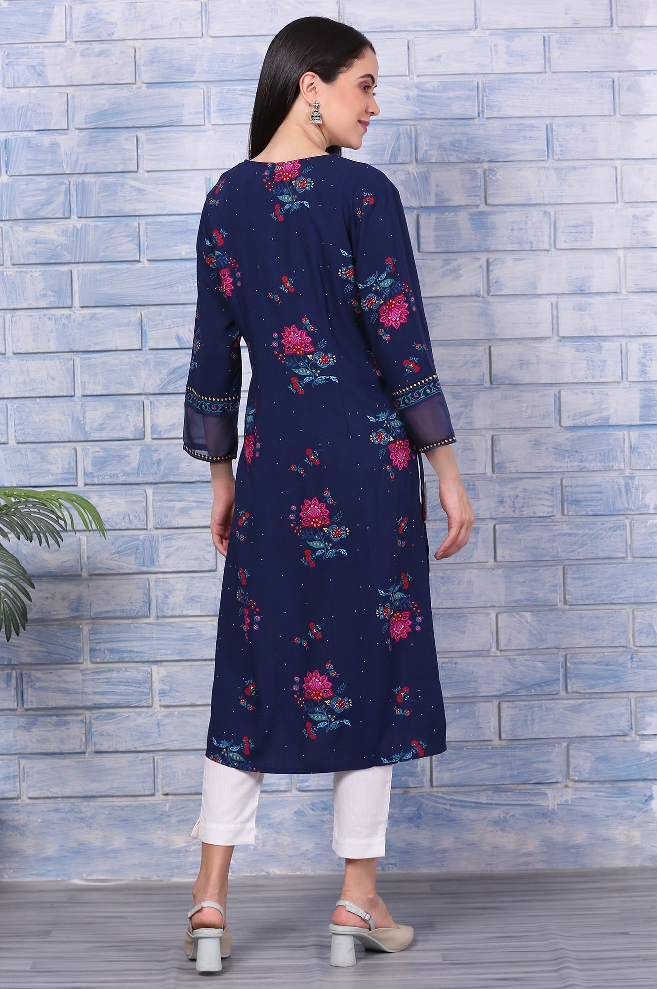 Chic in its simplicity, this blue floral printed kurta in soft rayon offers comfort and elegance in one frame. The straight silhouette lends itself to a clean and streamlined look, while the floral print adds a splash of vibrancy. The fabric’s fluid drape flatters without clinging, ideal for warm climates or all-day wear. It can easily transition from office-ready to casual weekends with a change of bottoms or accessories. The fresh color and print combination keeps the look youthful and season-appropriate.