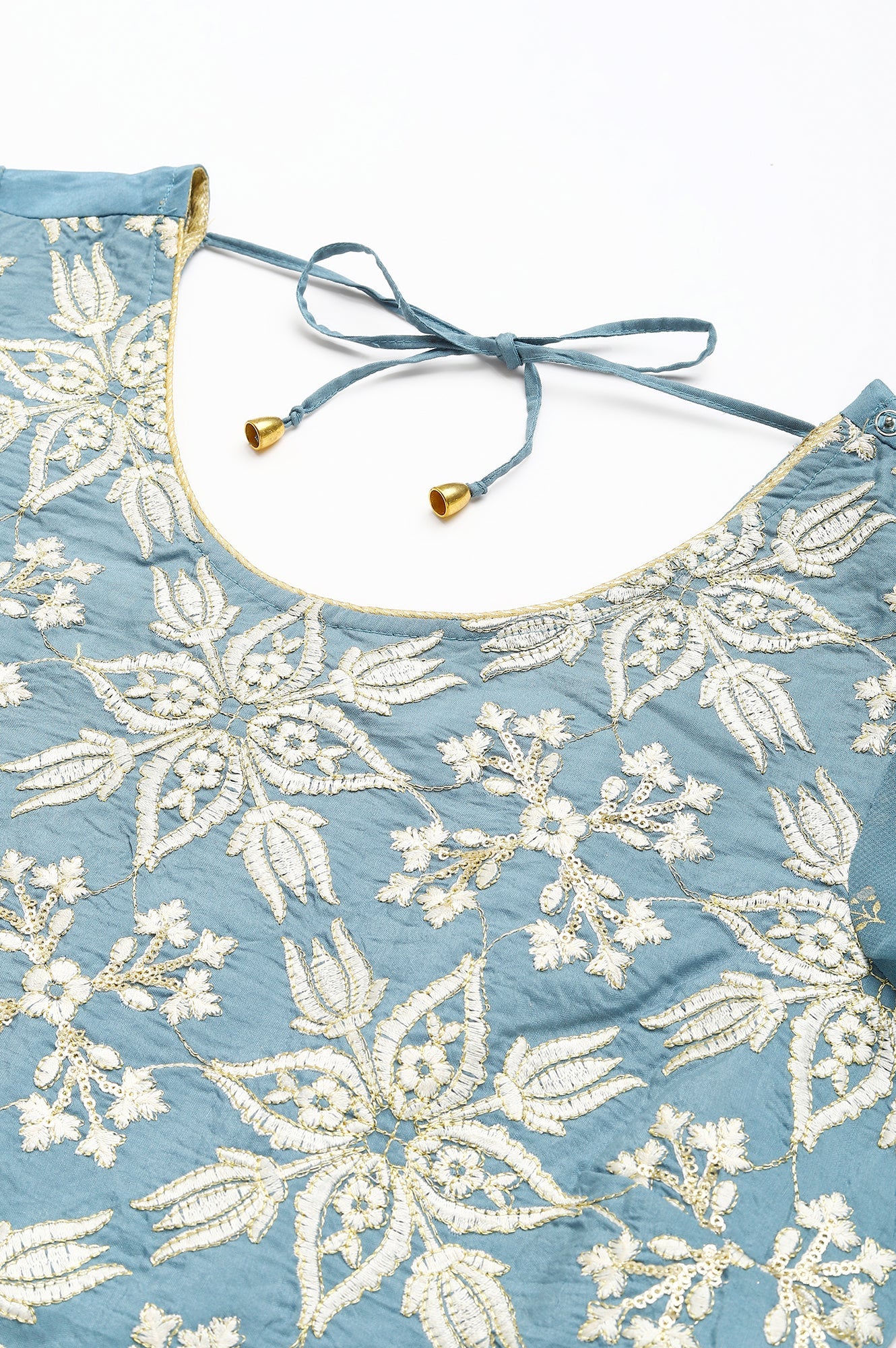 Blue Mist Embroidered Crop Top with Palazzo and Drape